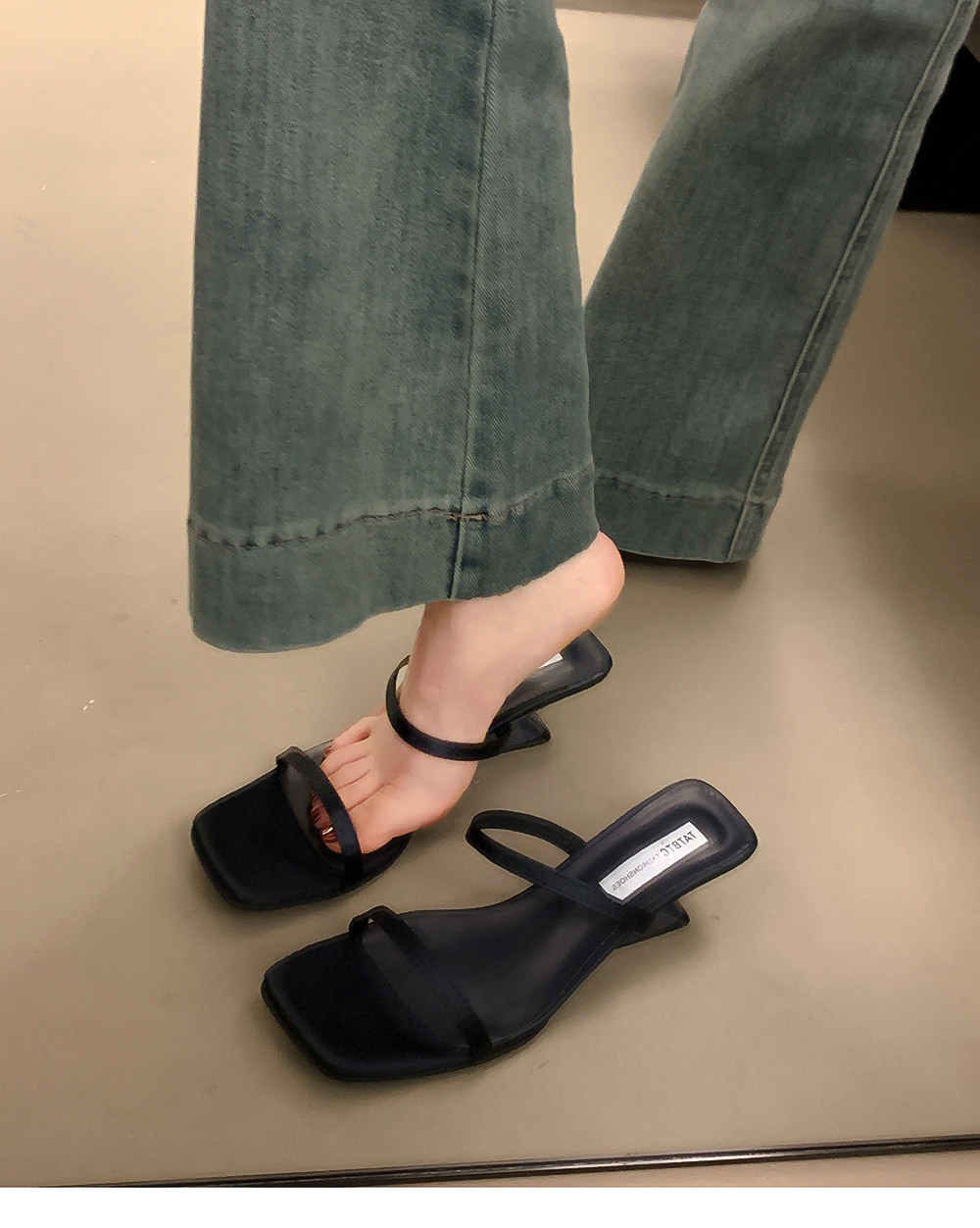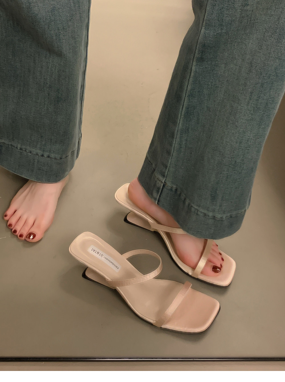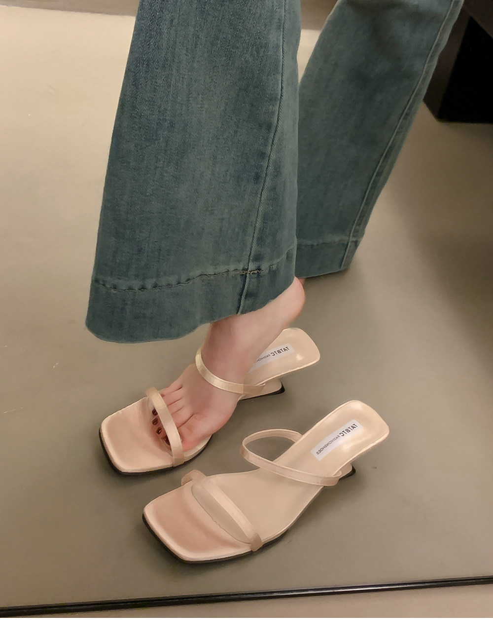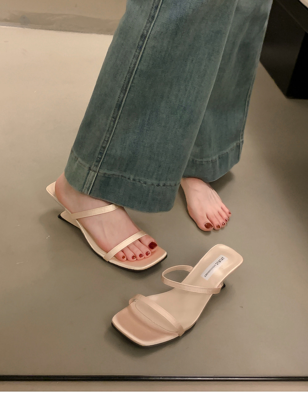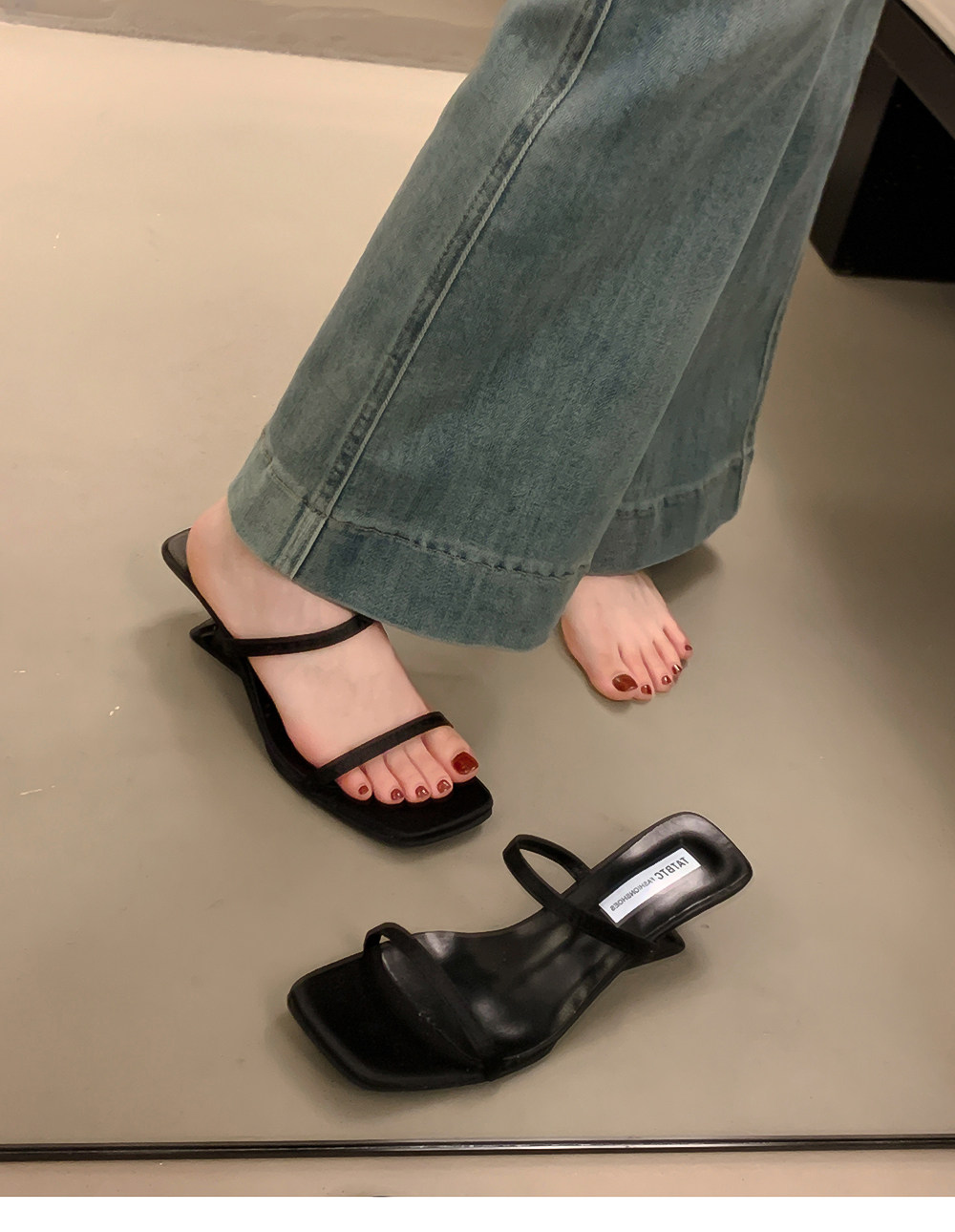 Летние тапочки, минималистичная обувь, слайдеры на высоком каблуке, популярно в интернете, тонкий ремешок