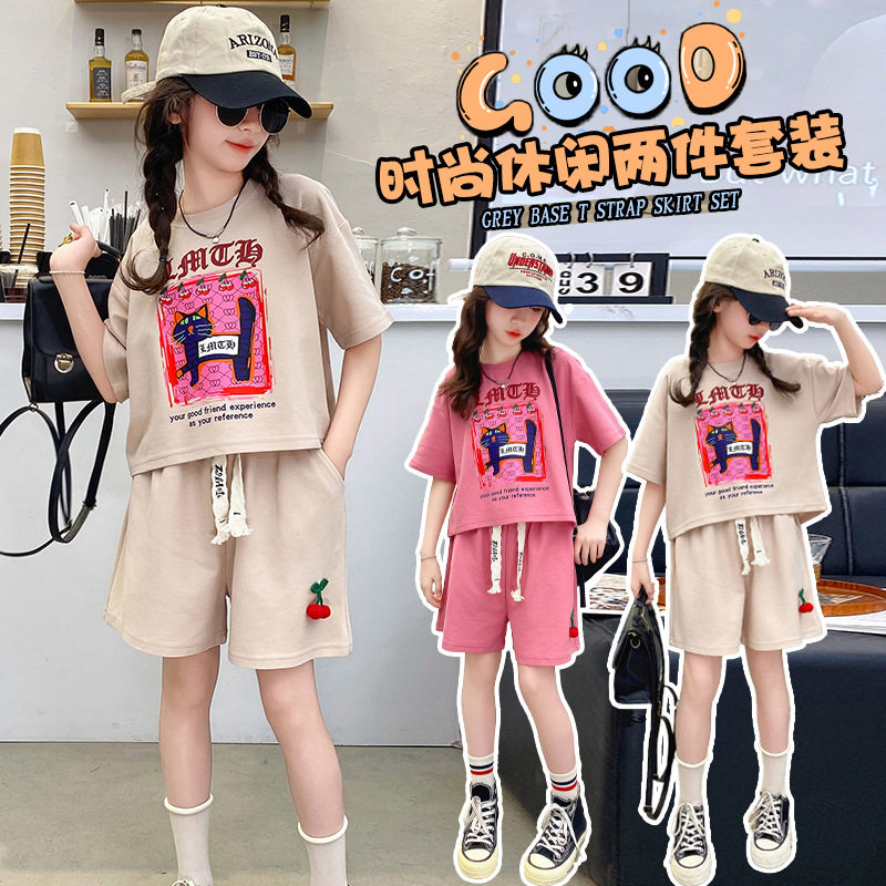 Шорты, комплект, летняя одежда, мультяшная футболка, подходят для подростков, в западном стиле