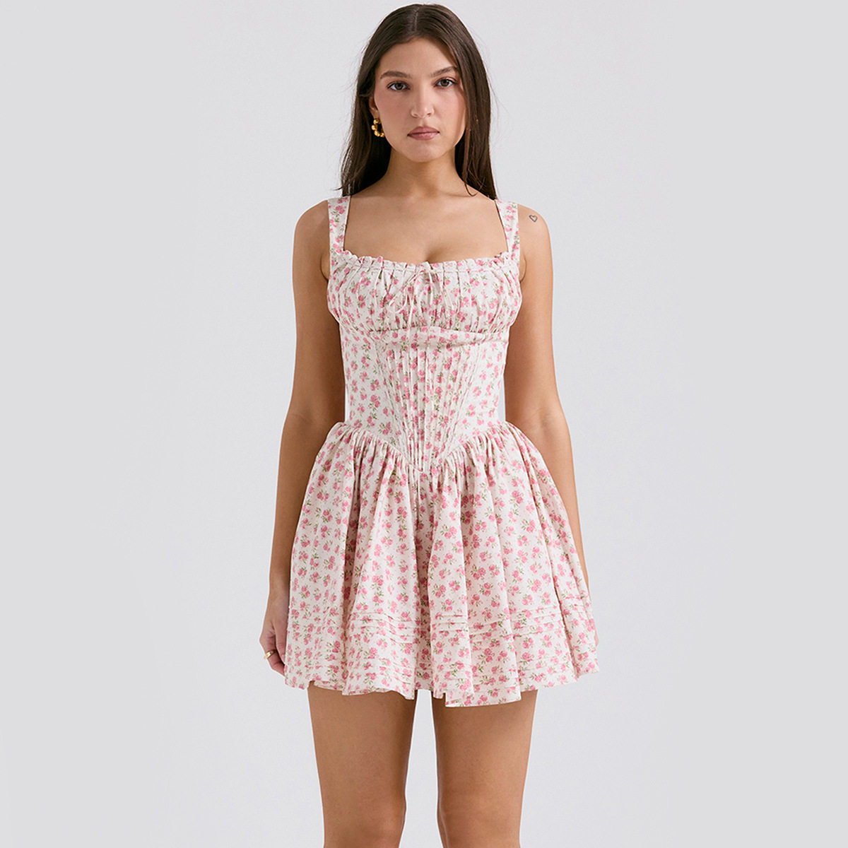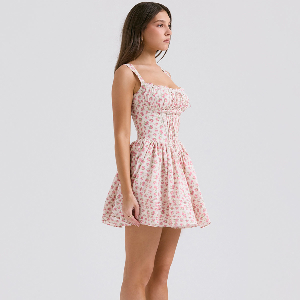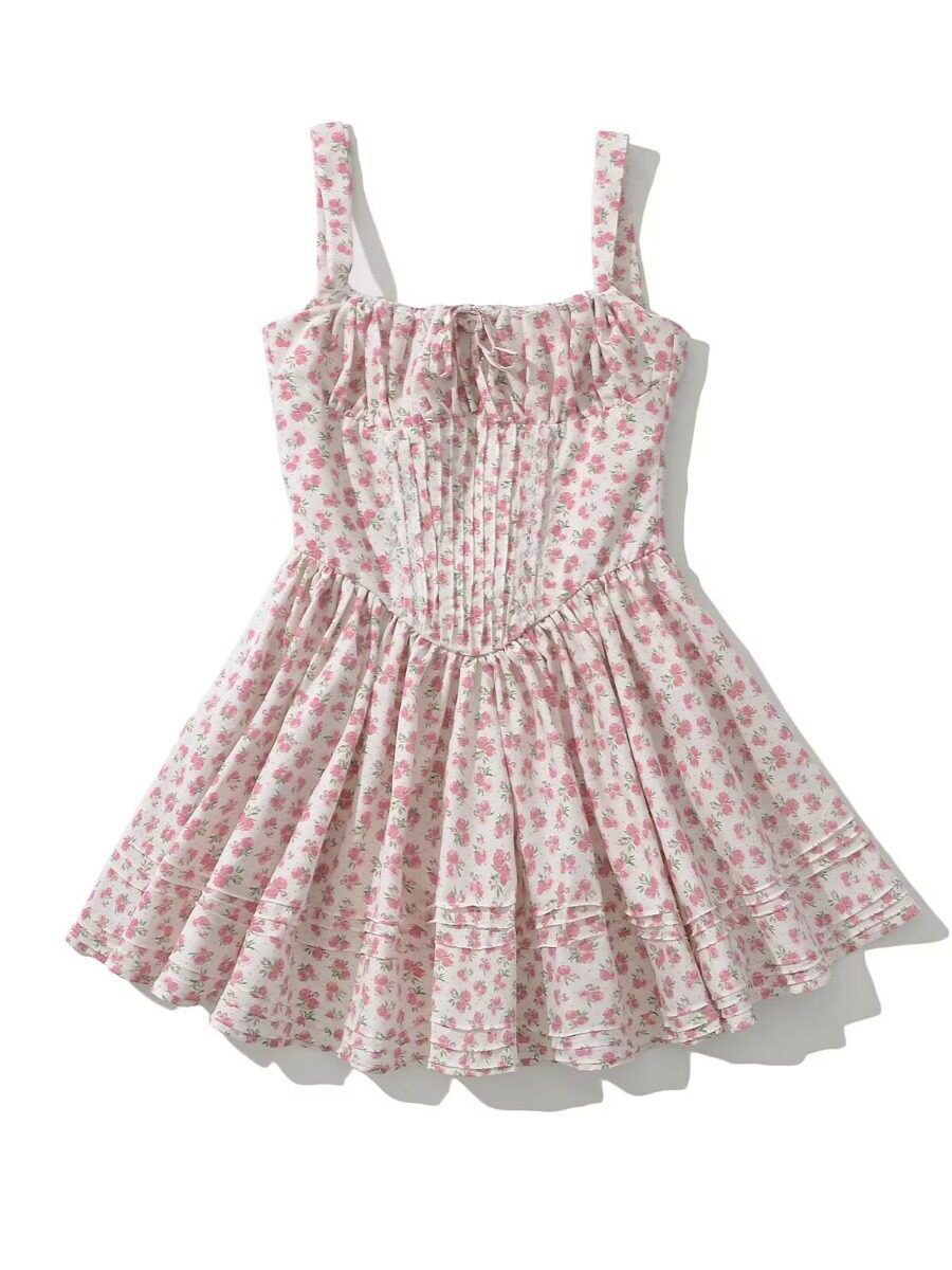 Ретро кружевное платье, приталенный корсет, юбка в складку, брендовая мини-юбка, цветочный принт