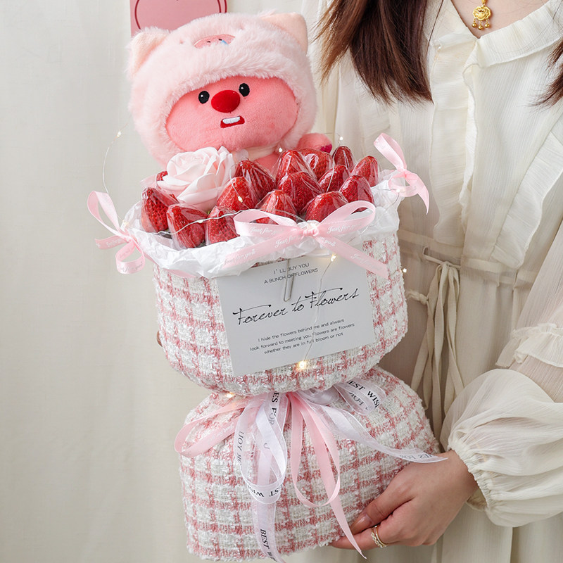 Рождественская мультяшная кукла, клубника, упаковка, набор материалов, DIY, букет