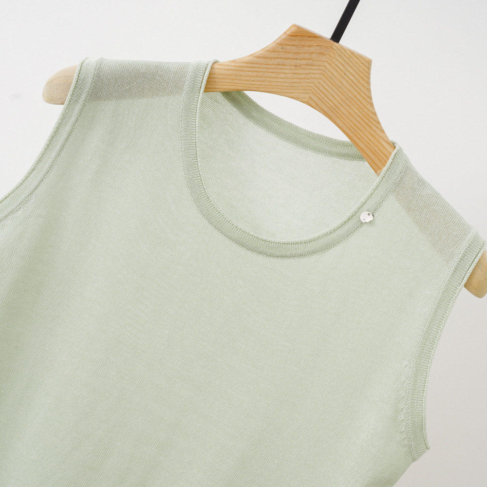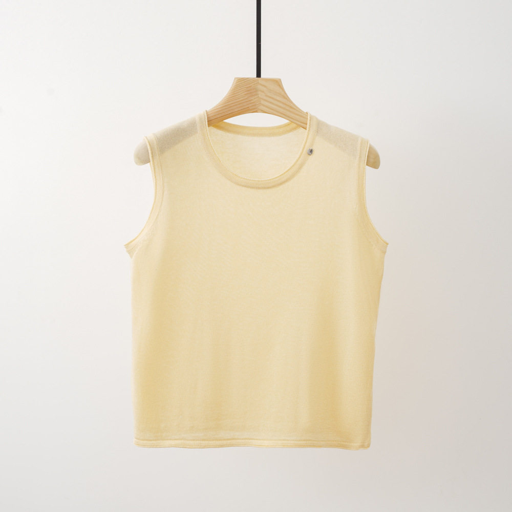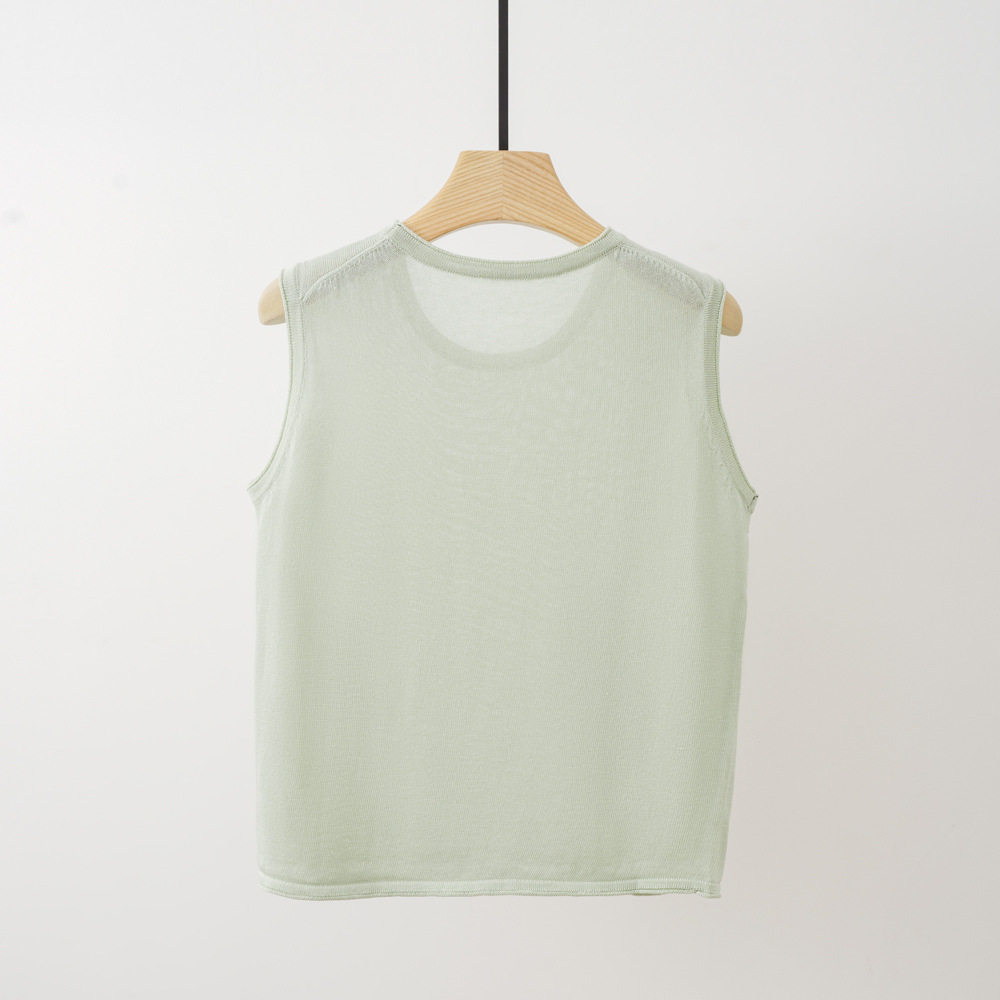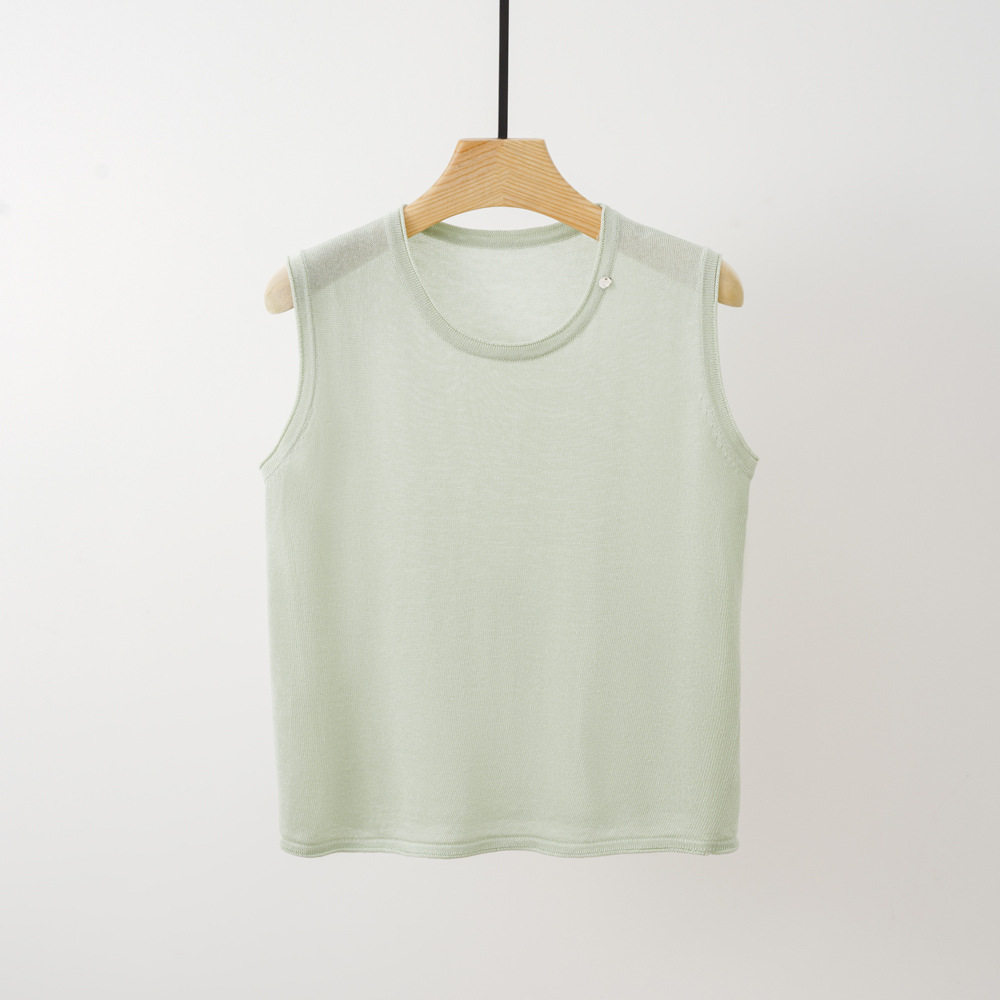 Трикотажный летний жилет без рукавов с круглым воротником