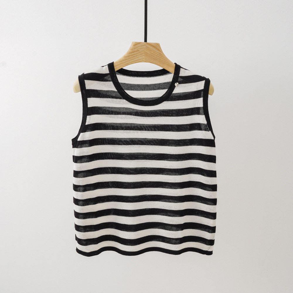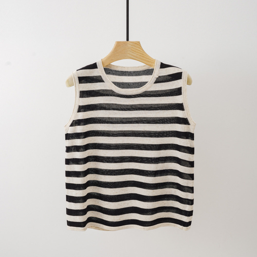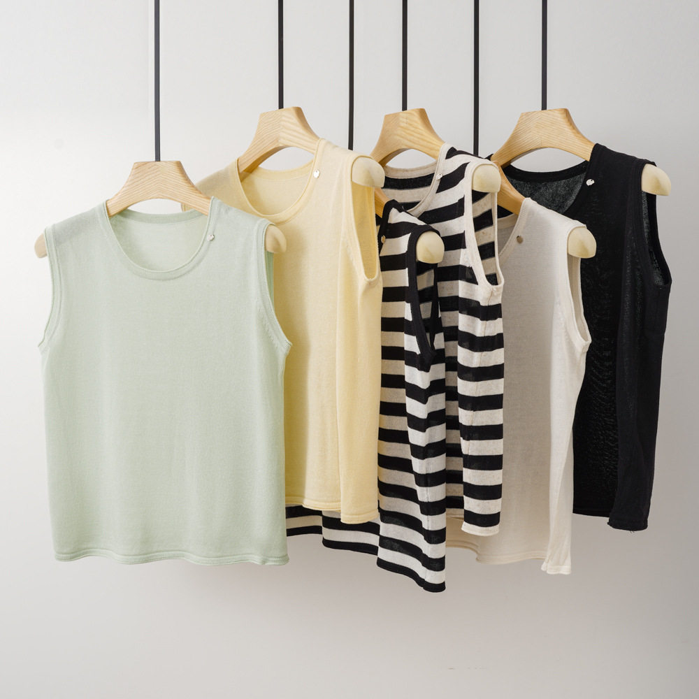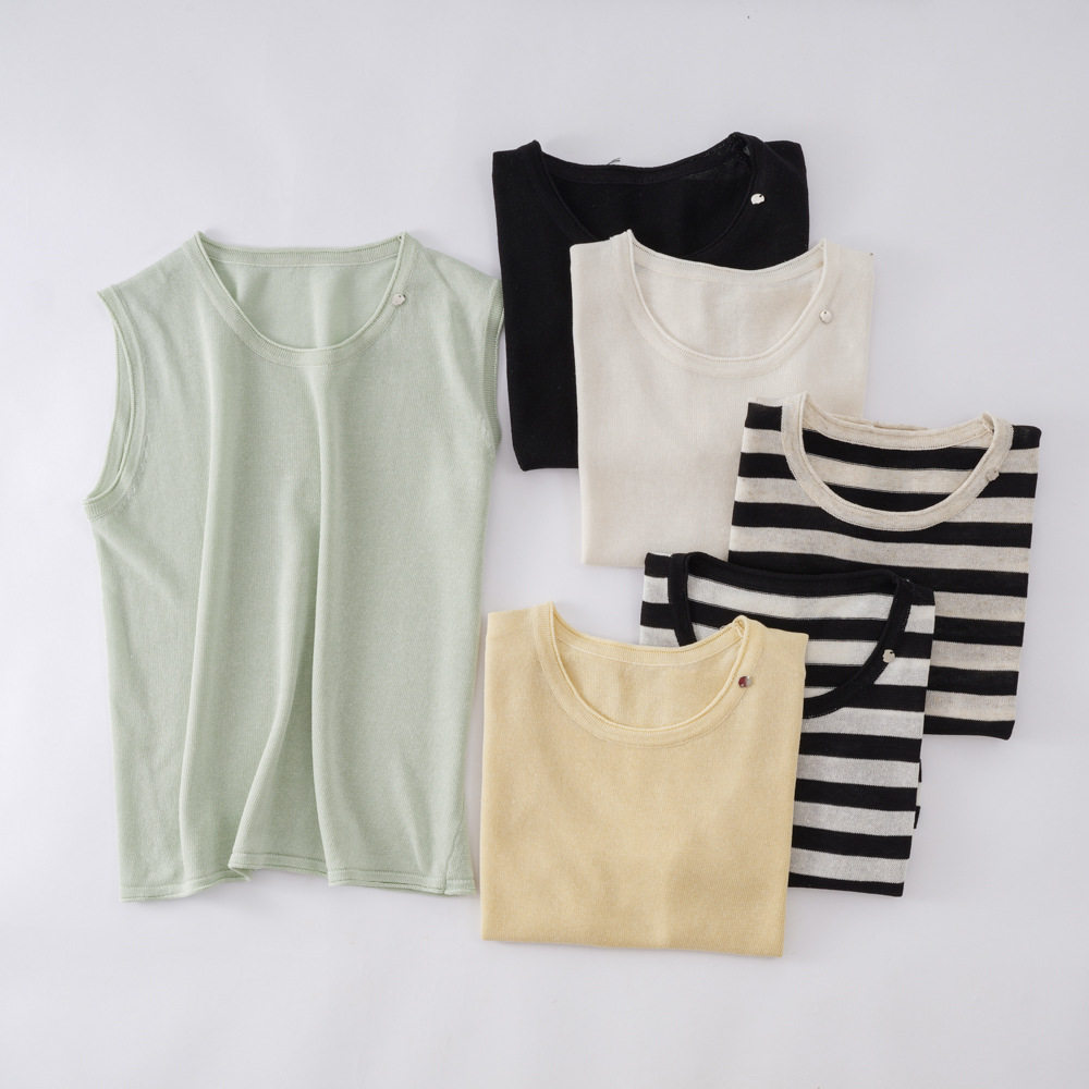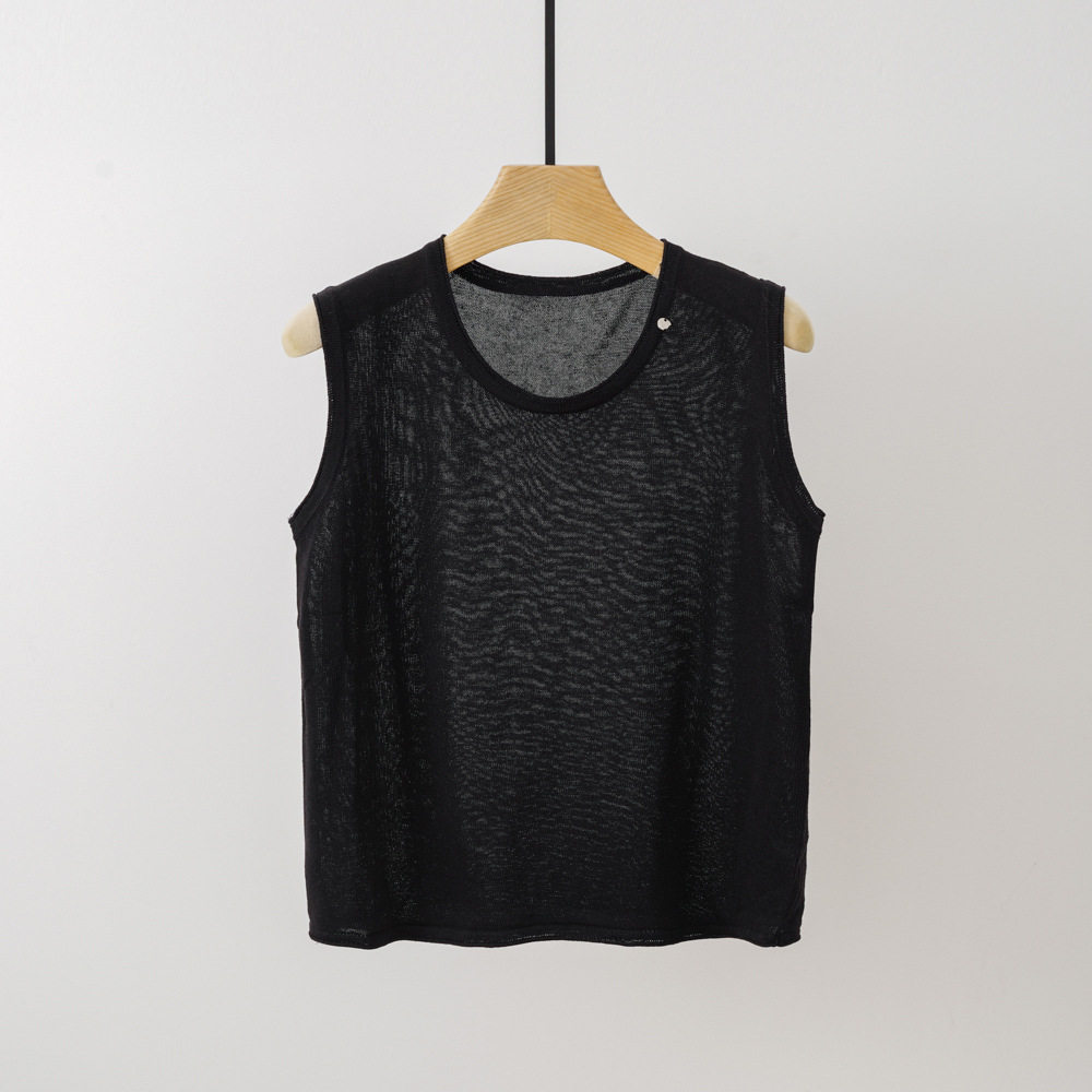 Трикотажный летний жилет без рукавов с круглым воротником