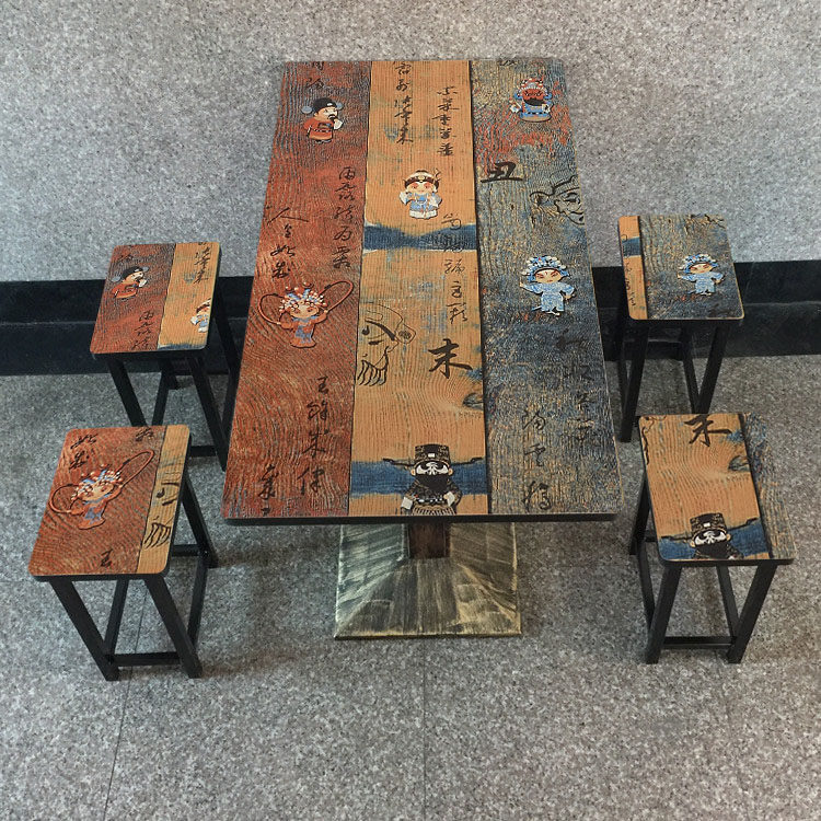 Ретро быстрого питания ресторан, стул, закусочный бар и стул Комбинированный прямоугольный ресторан Ресторан