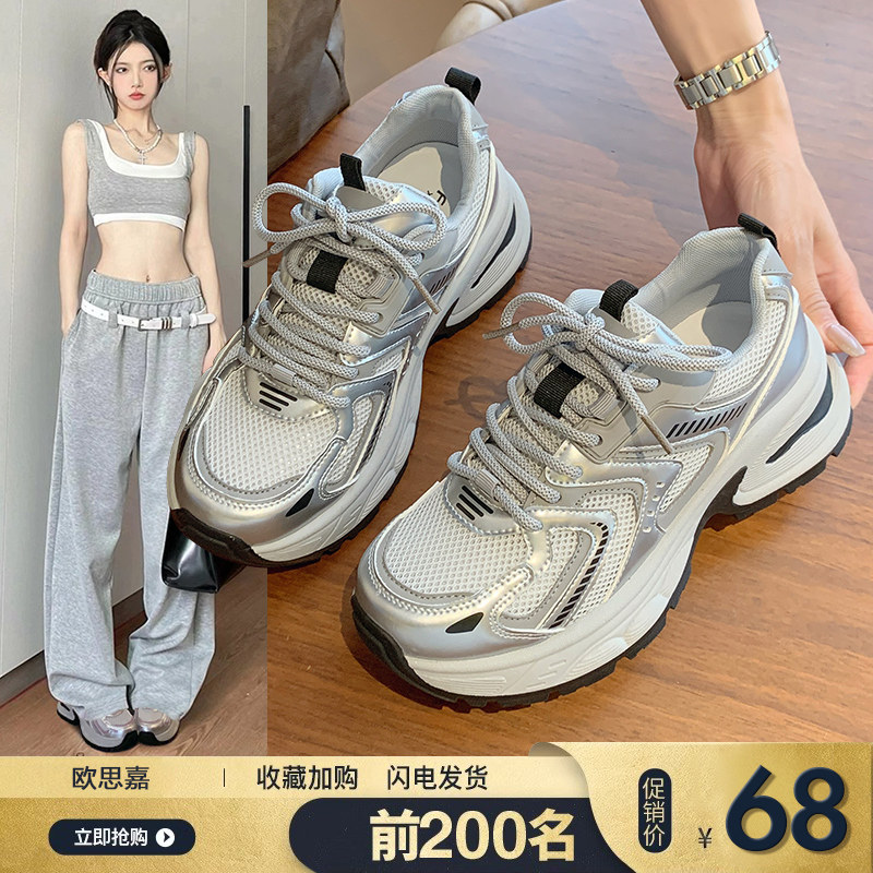 Сетчатая дышащая летняя тонкая повседневная обувь для отдыха, серебряная спортивная обувь на платформе