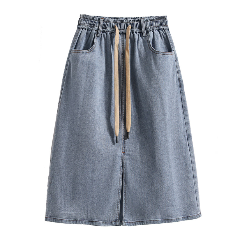 Тонкая летняя длинная эластичная джинсовая юбка, большой размер, для формы тела «груша», средней длины, А-силуэт