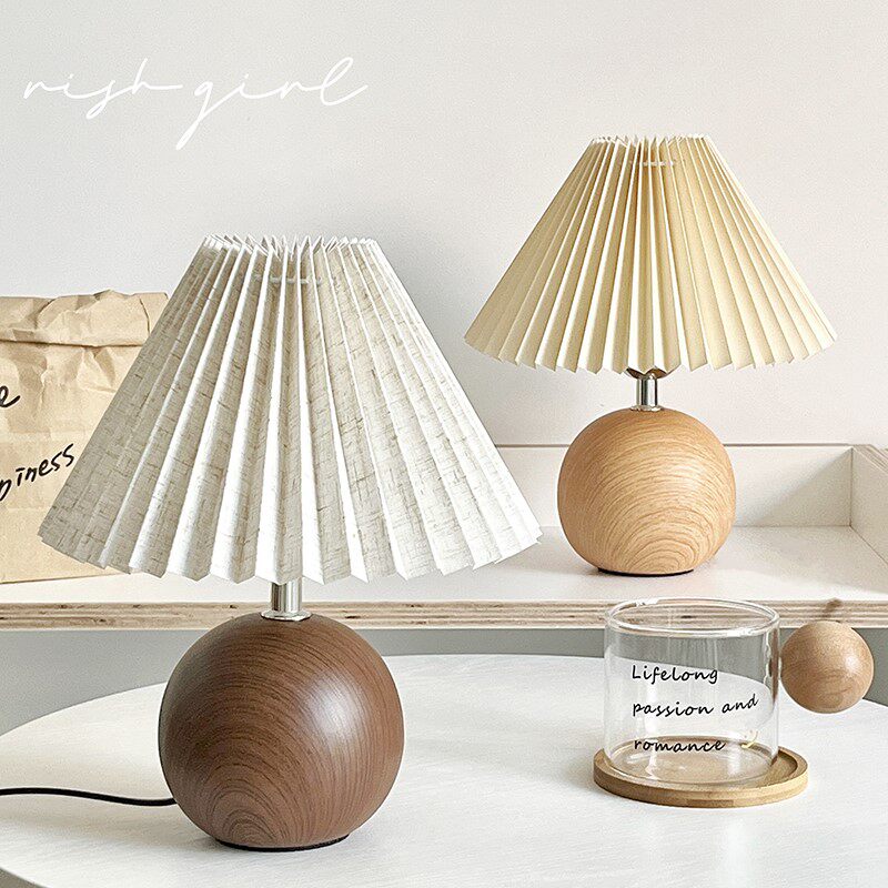 Подходит для настольной лампы, плиссированной ретро-лампы для кабинета из цельного дерева, ночника для спальни, теплого и романтического украшения рабочего стола, атмосферной кровати.