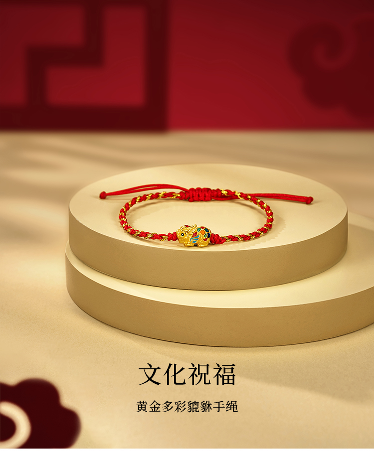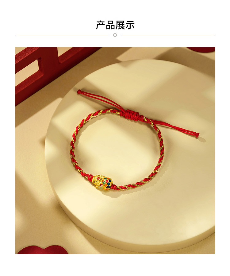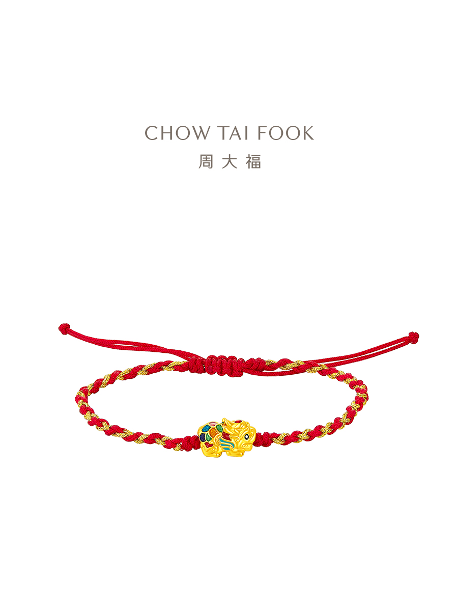 周大福 Золотой плетеный браслет с одной бусиной, подарок на день рождения