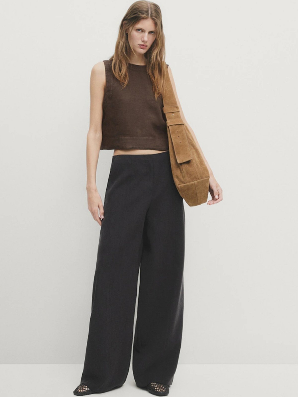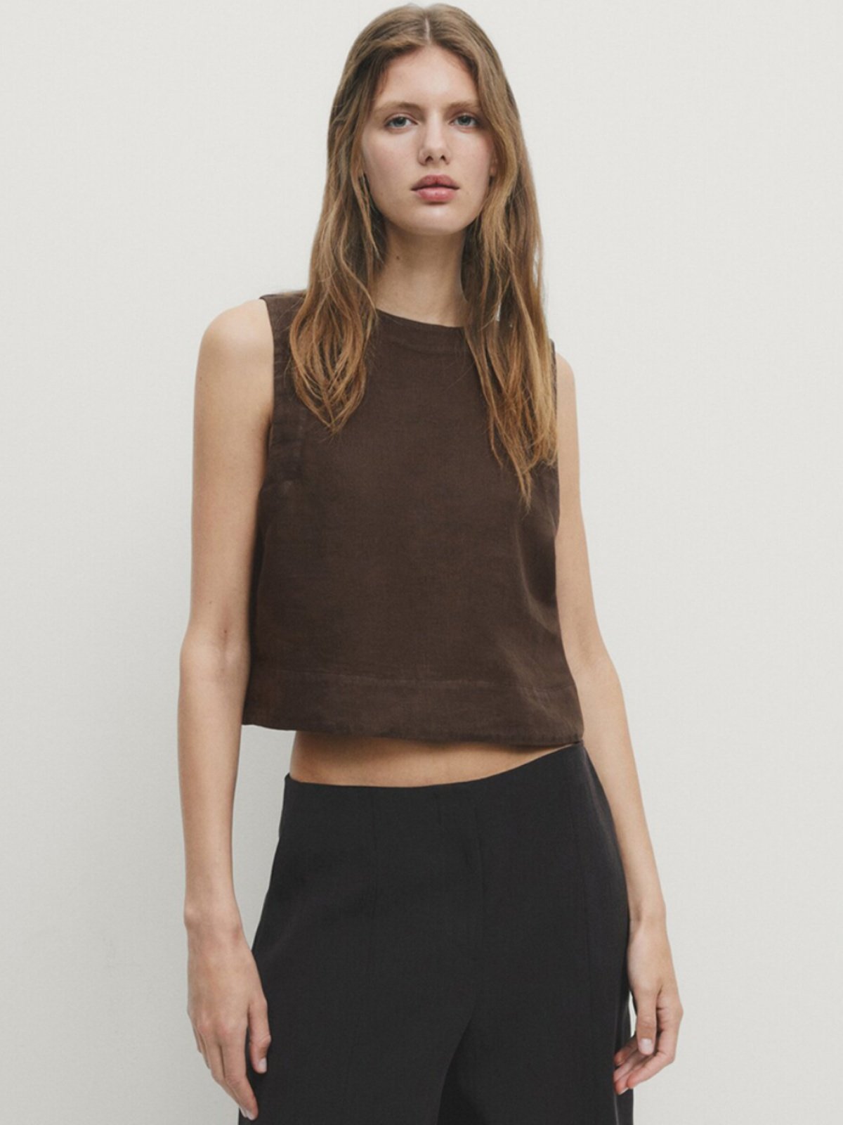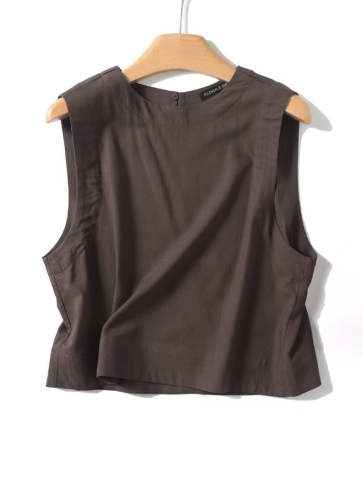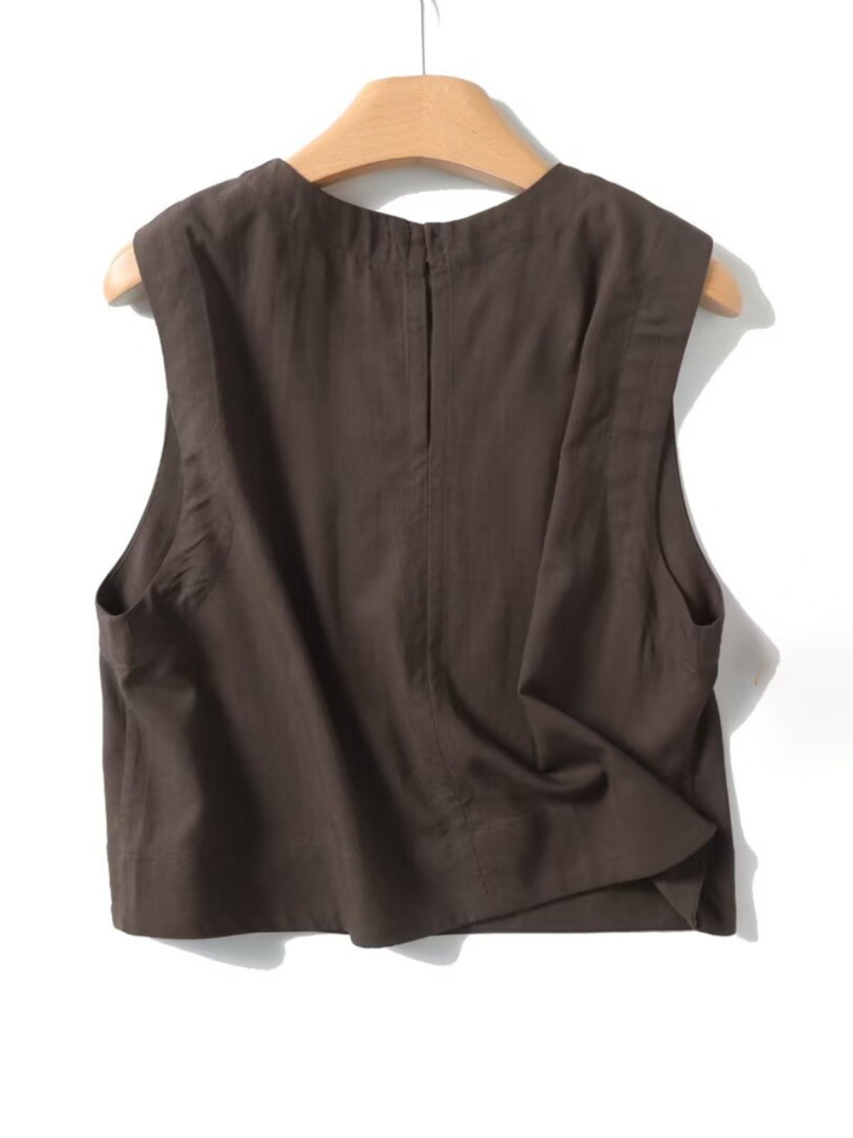 Летняя минималистичная коричневая легкая и тонкая рубашка без рукавов