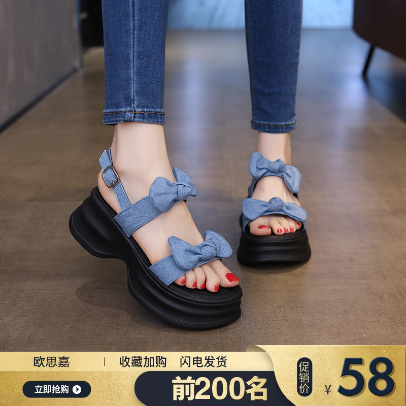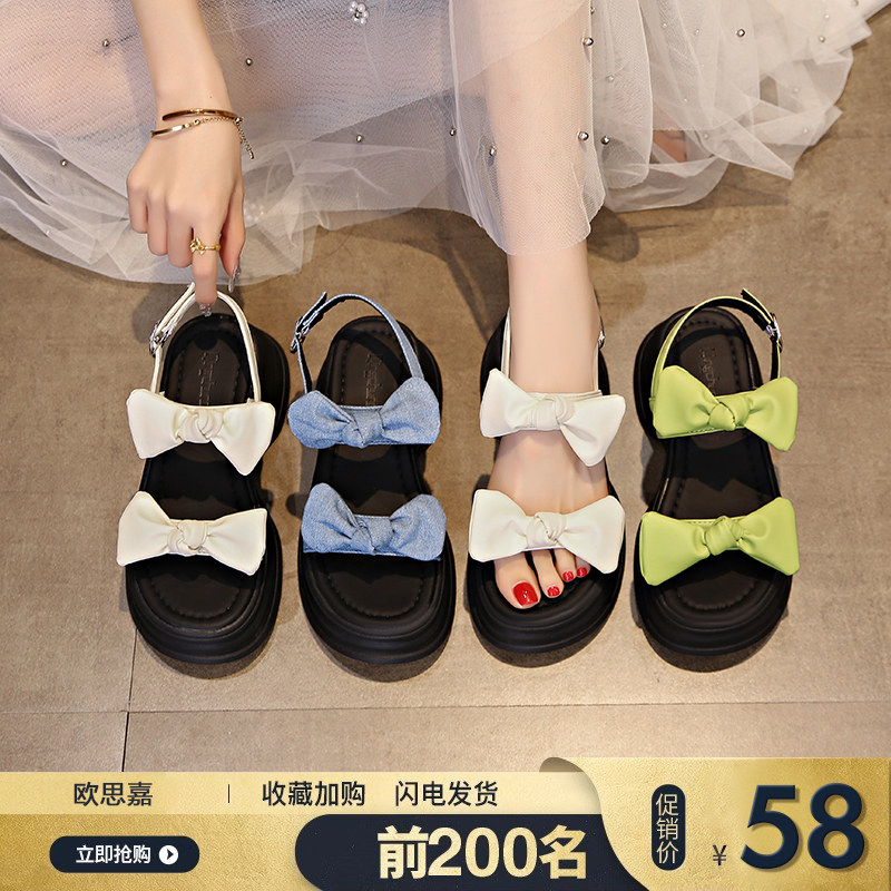 Летние сандалии на платформе, подходит с юбкой с бантиком, универсальная пляжная обувь