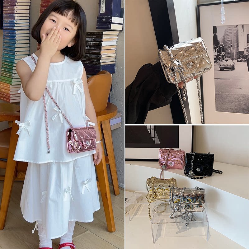 Детская сумка, горный чай, серебряная сумка через плечо с ромбовидным узором для принцессы для выхода на улицу, в западном стиле