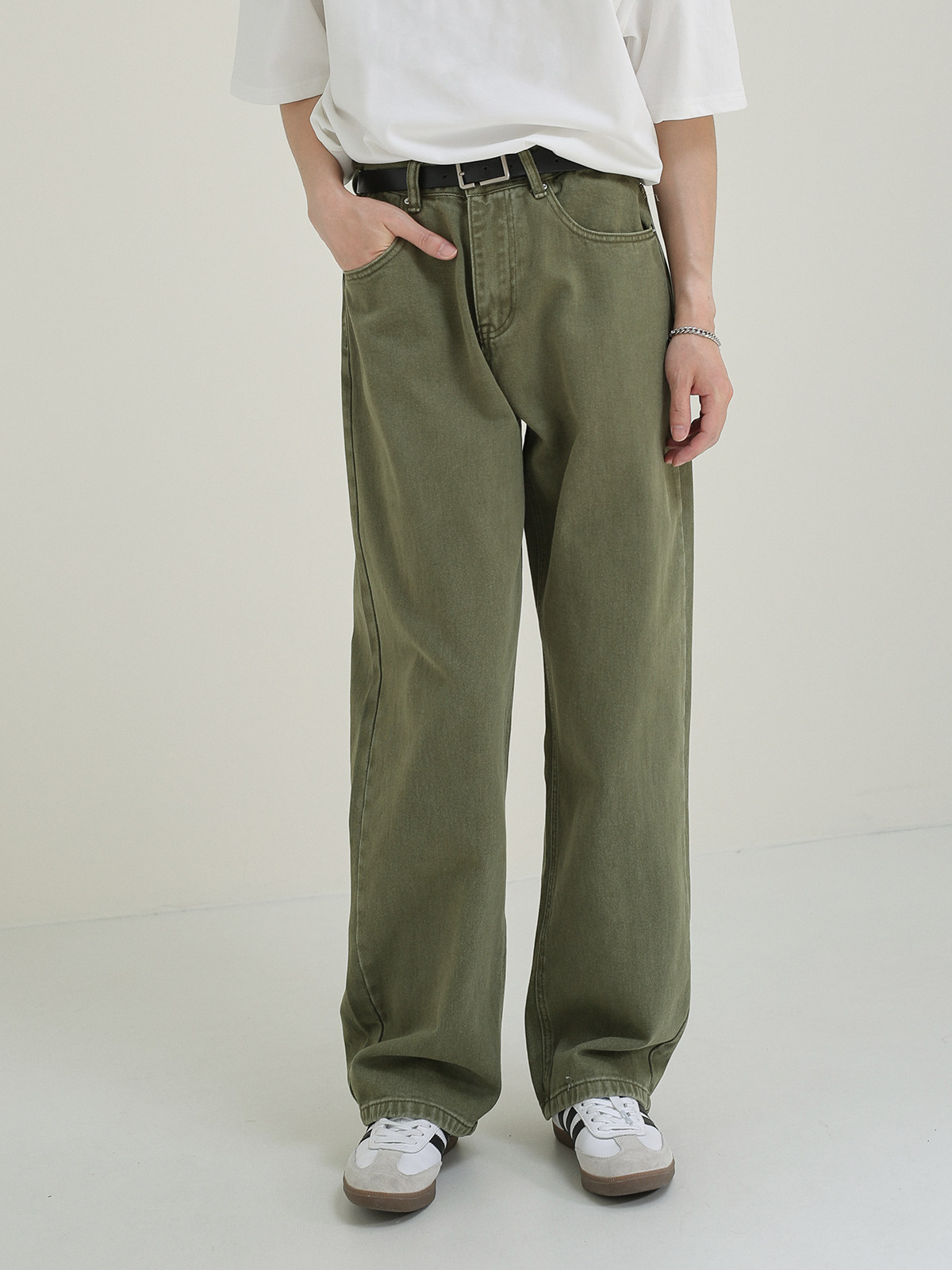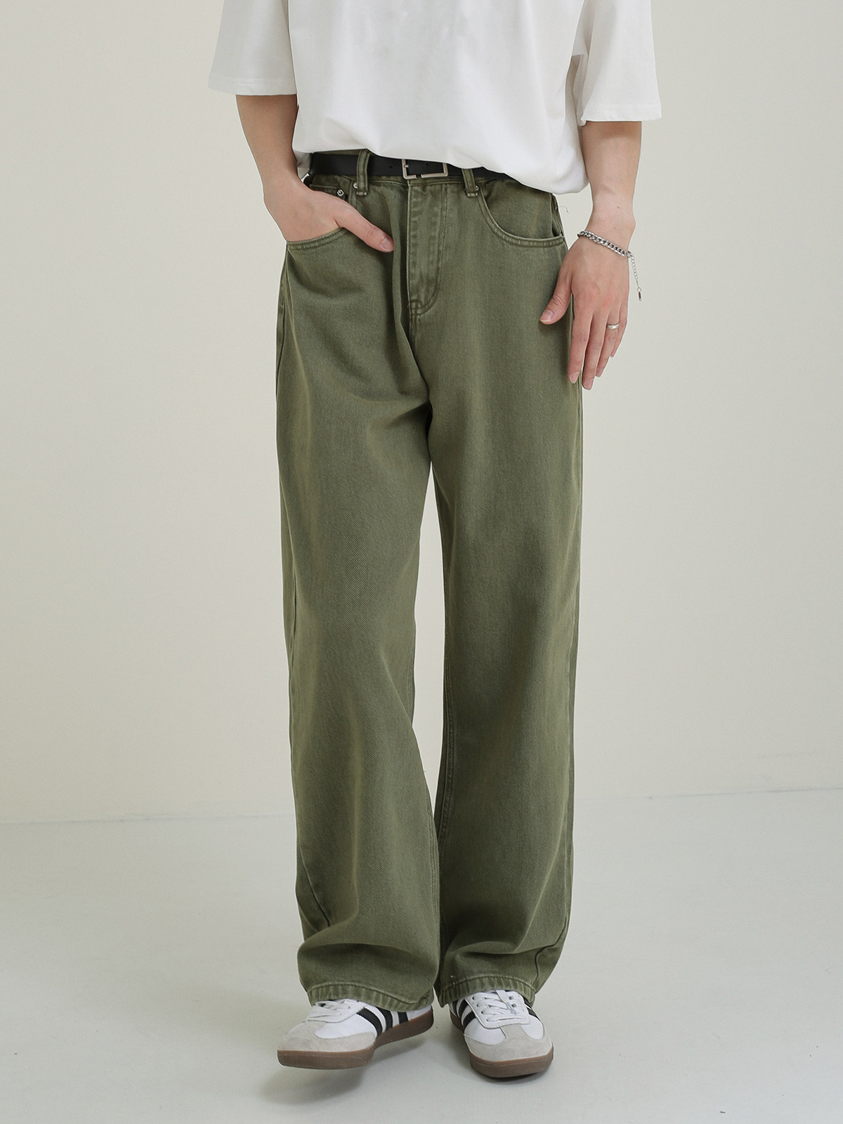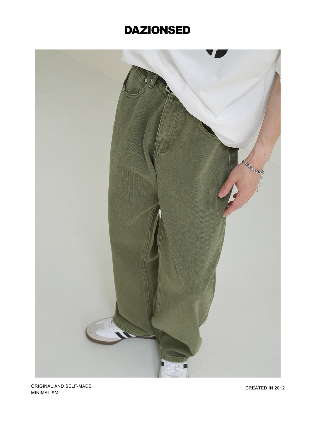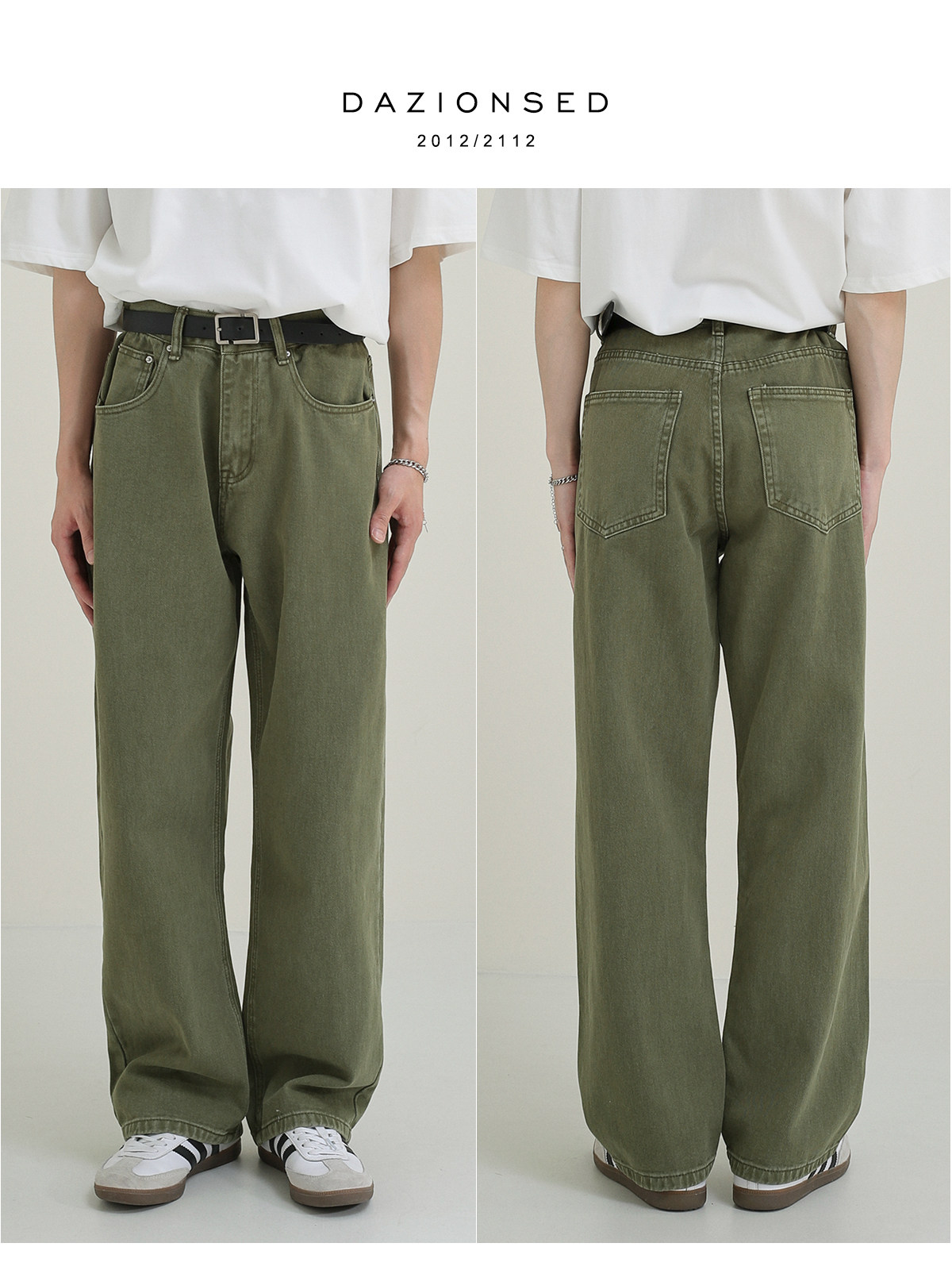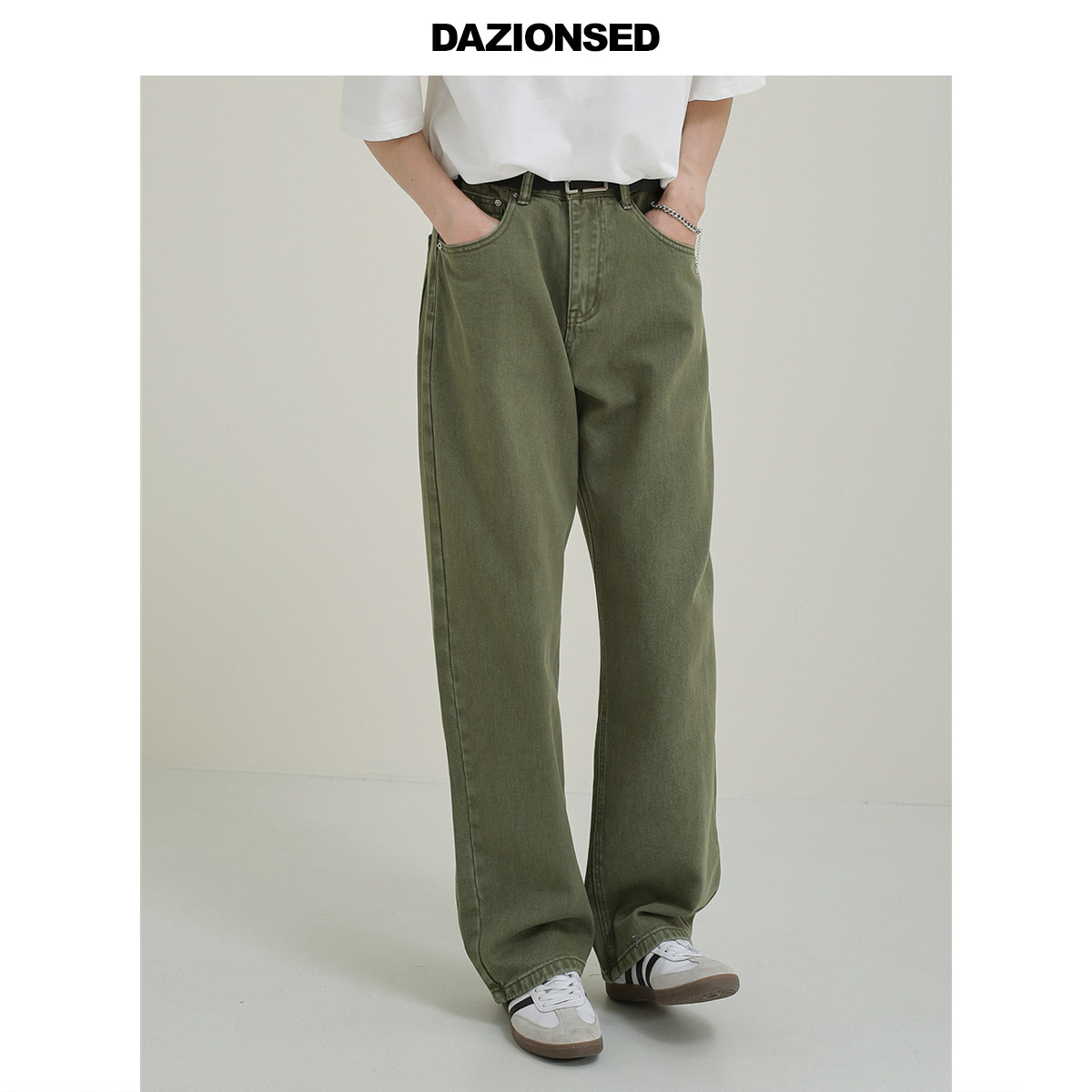 Осенние мужские зеленые прямые свободные джинсы, универсальные повседневные брюки, свободный крой