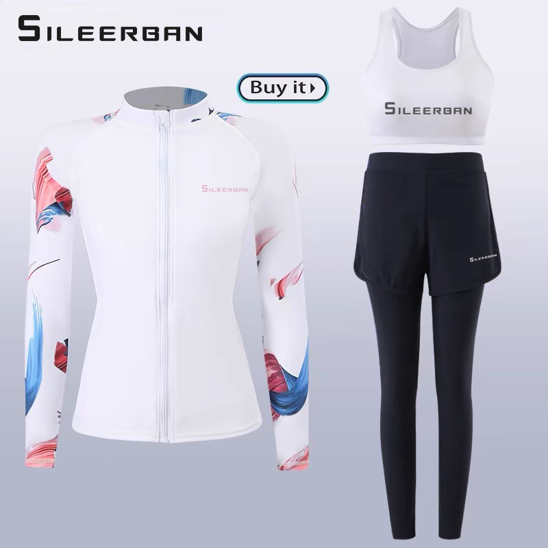 Купальник, раздельный лонгслив, быстросохнущие приталенные штаны, большой размер, защита от солнца