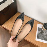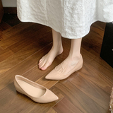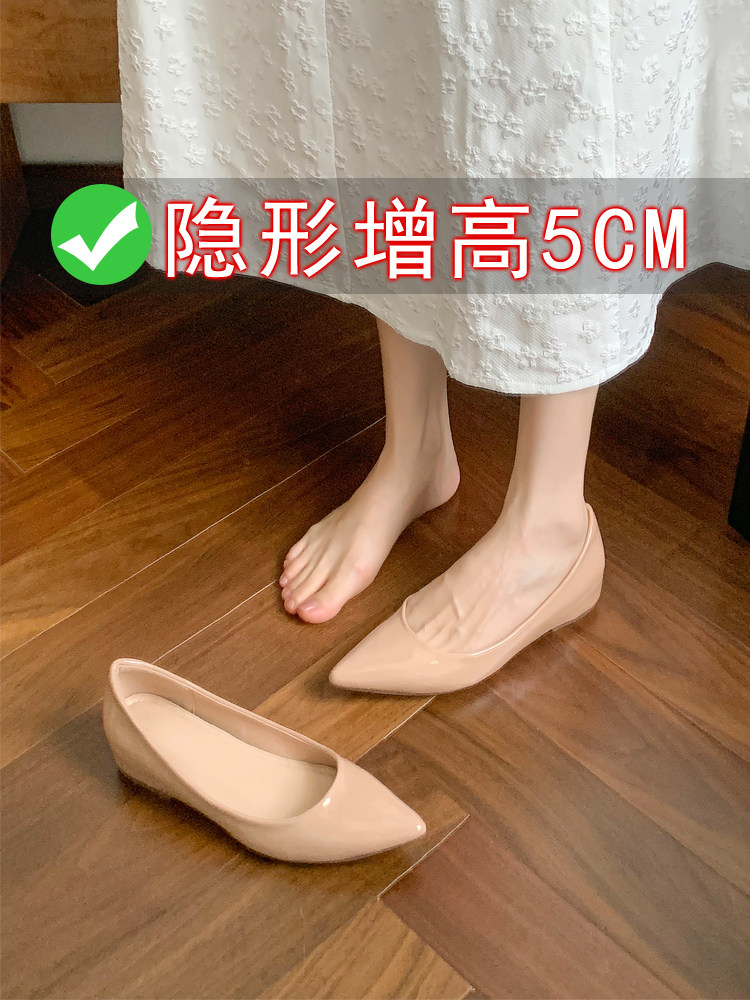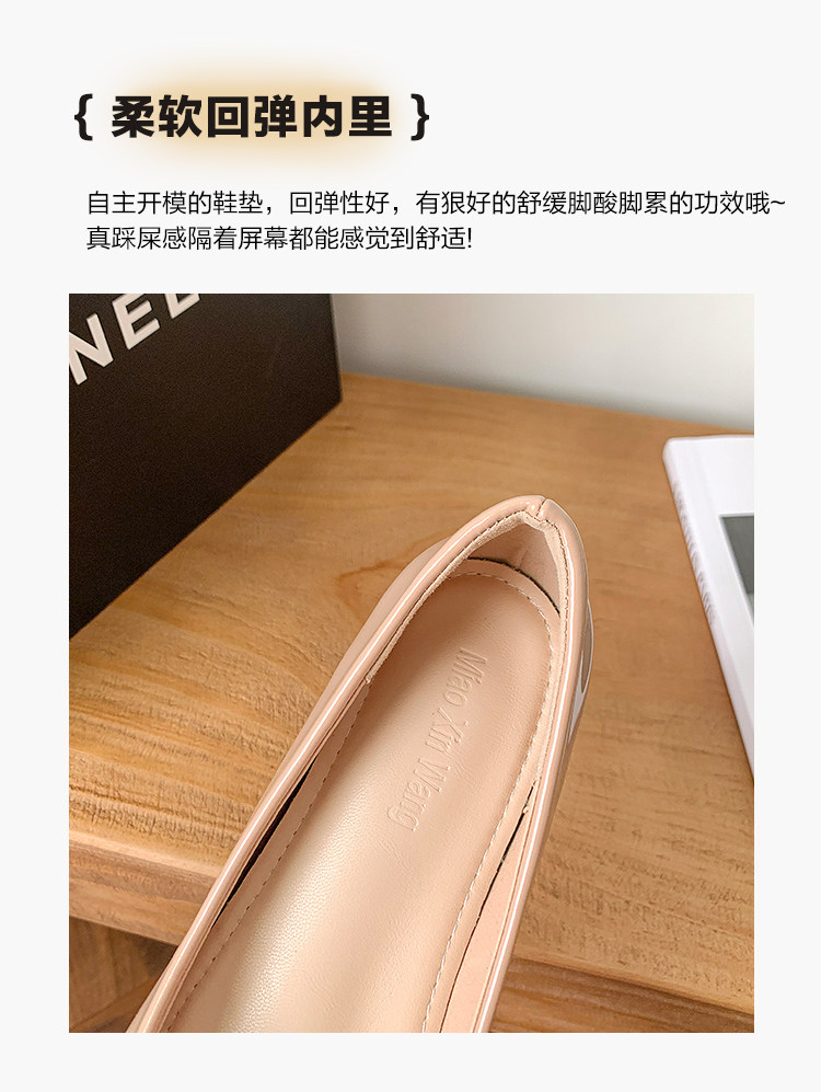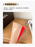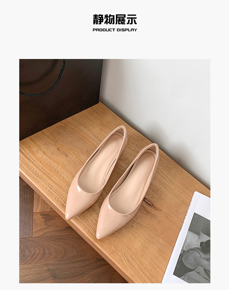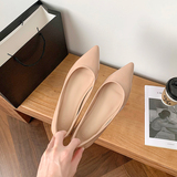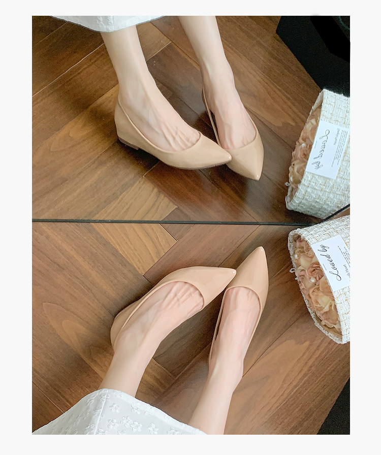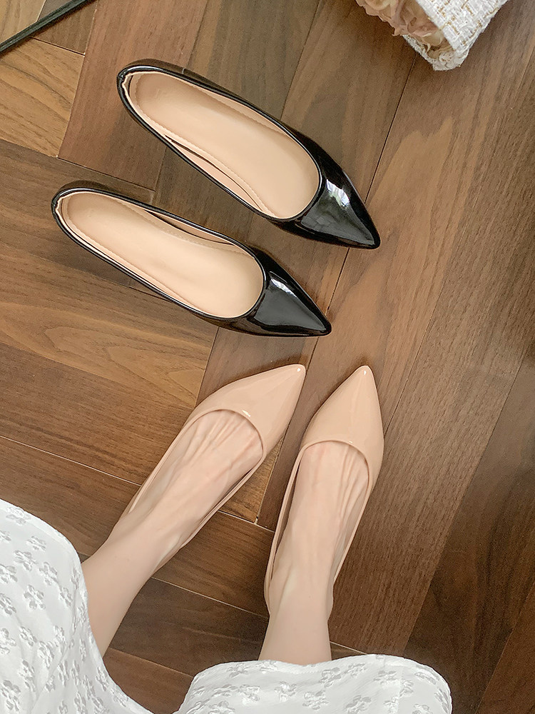 Высокая нюдовая обувь с заостренным носом с низким вырезом, 5см, из натуральной кожи, французский стиль