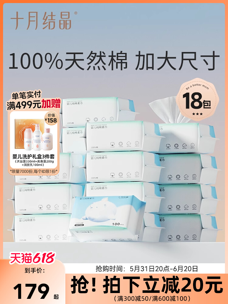 十月结晶 Детские хлопковые влажные салфетки для умывания