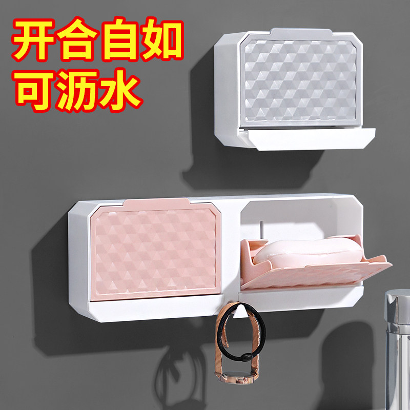 Ванная комната для мыльной коробки без удара и дренажа с крышкой домохозяйственной флип-двойной подушки для хранения мыла