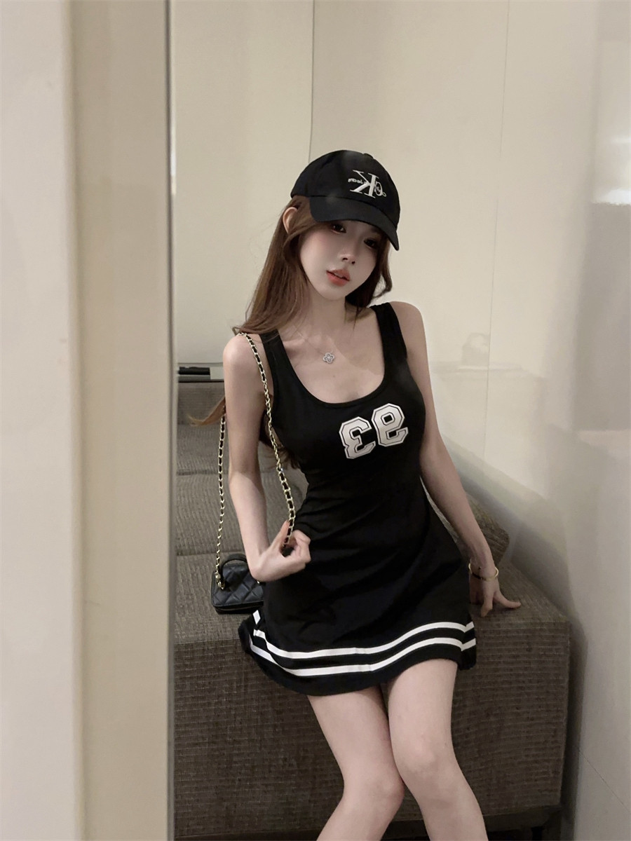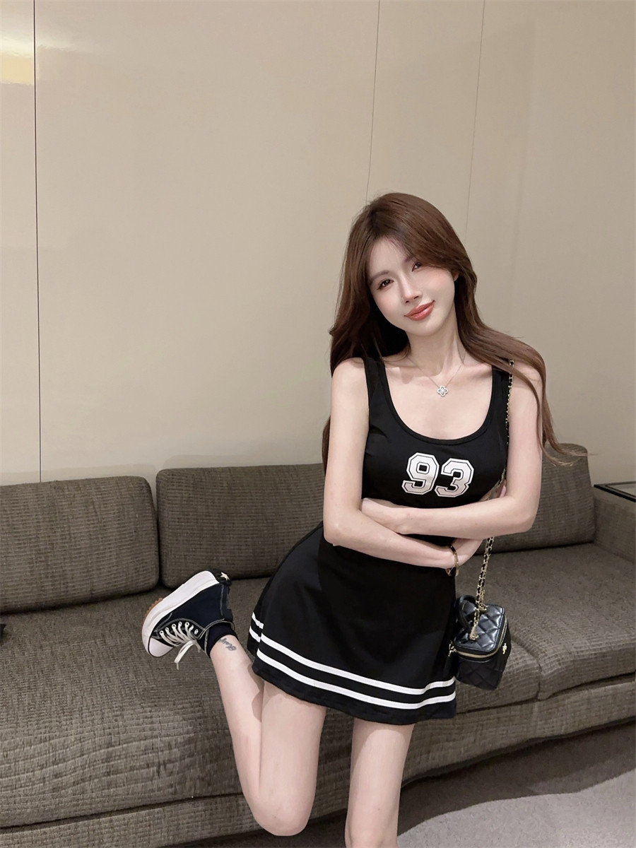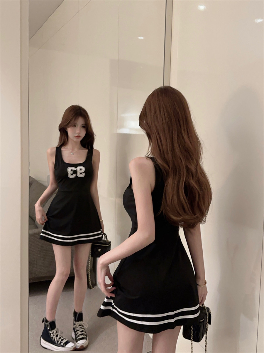 Спортивное платье для отдыха, юбка, в корейском стиле, в цветочек, А-силуэт