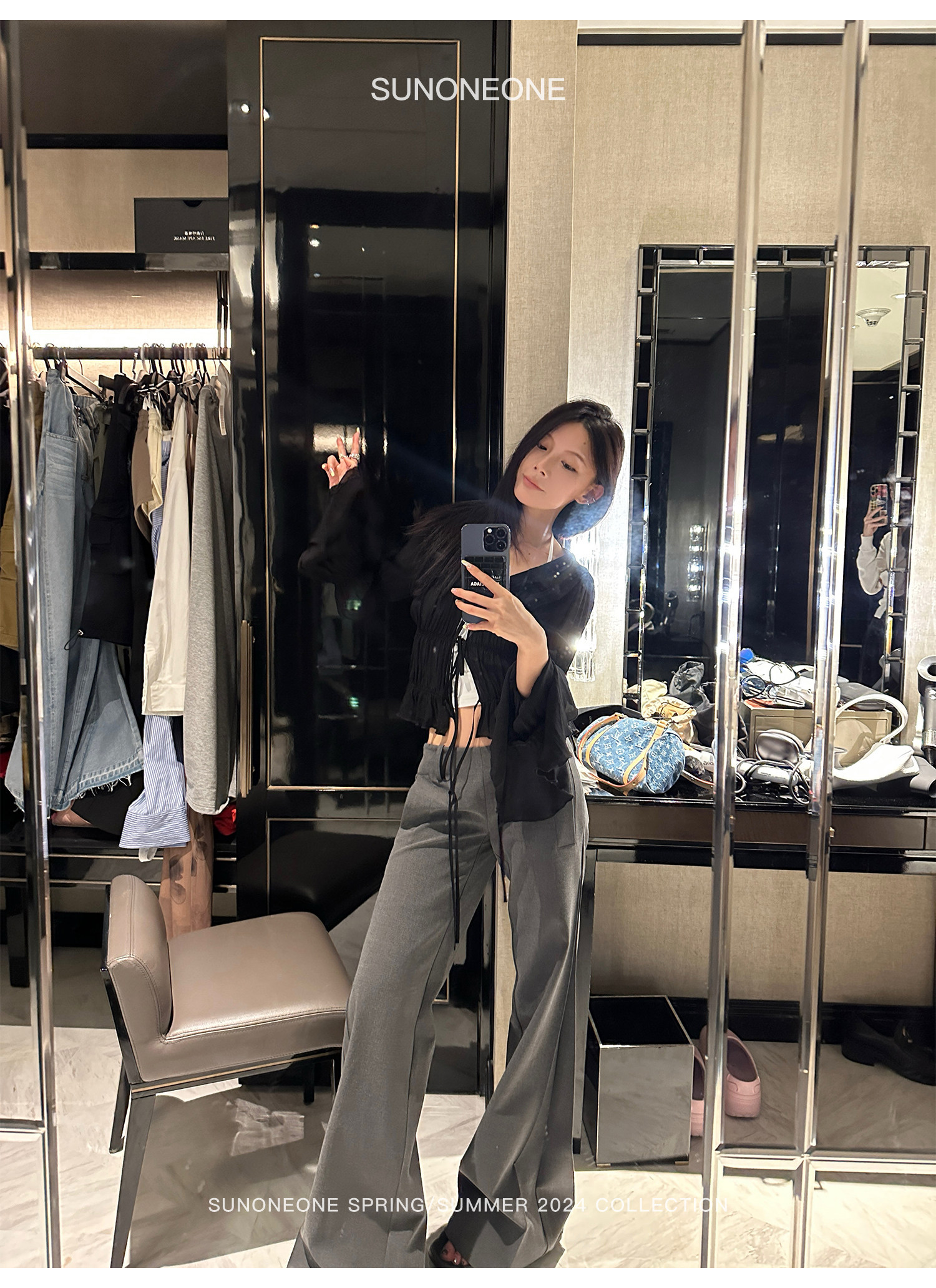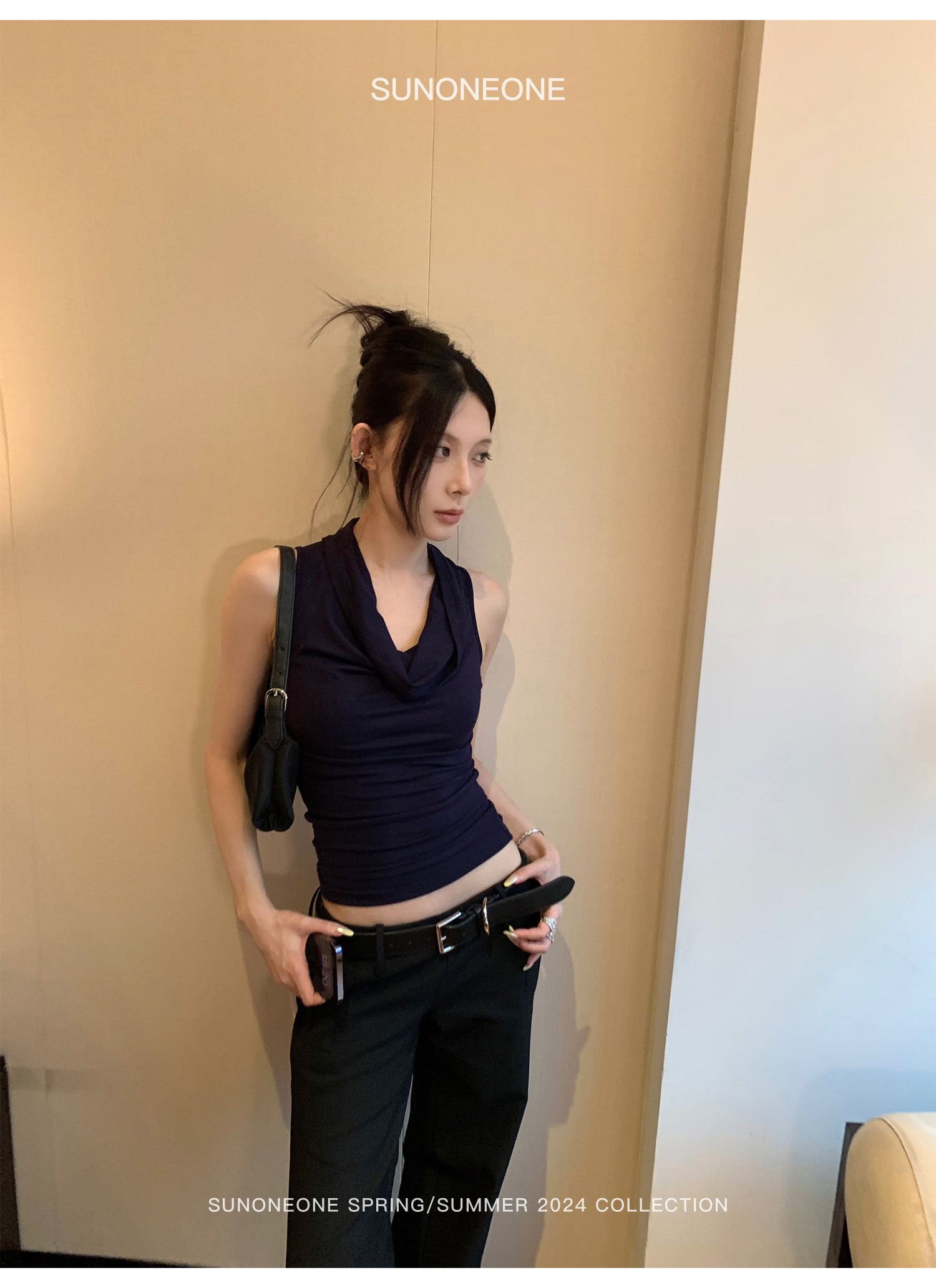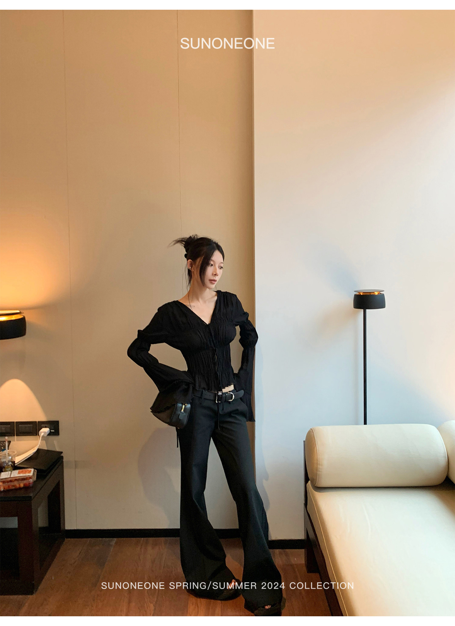 Sunoneone черные костюмные брюки женские летние новые с низкой талией в американском винтажном стиле со складками наиболее легко сочетаются с тонкими повседневными брюками