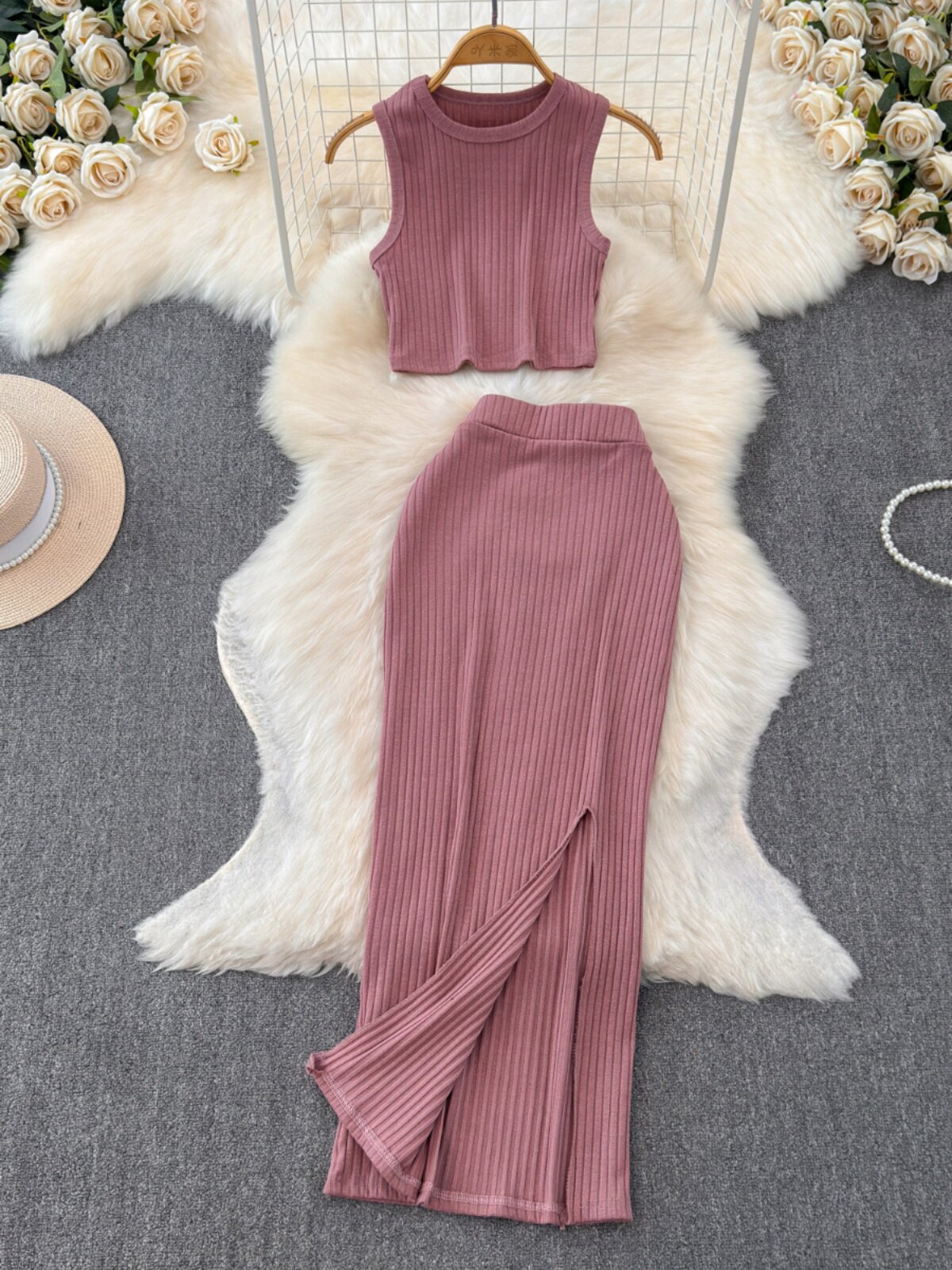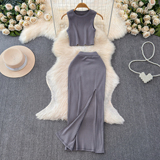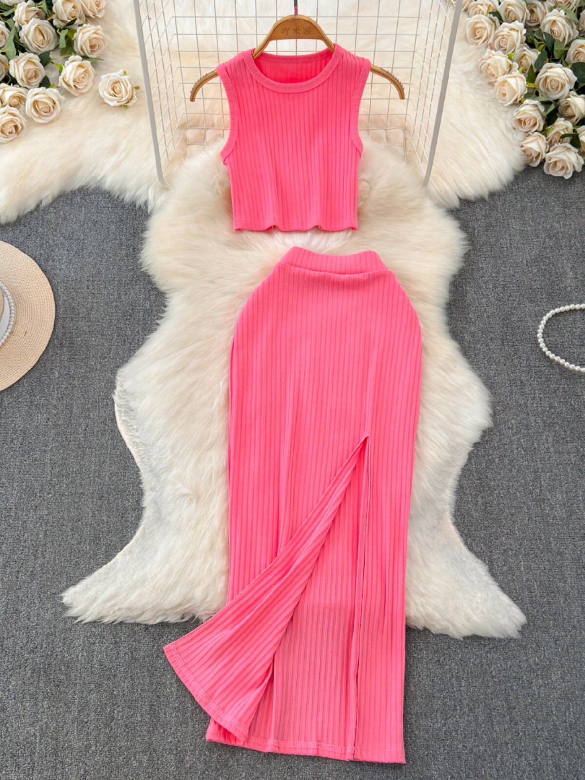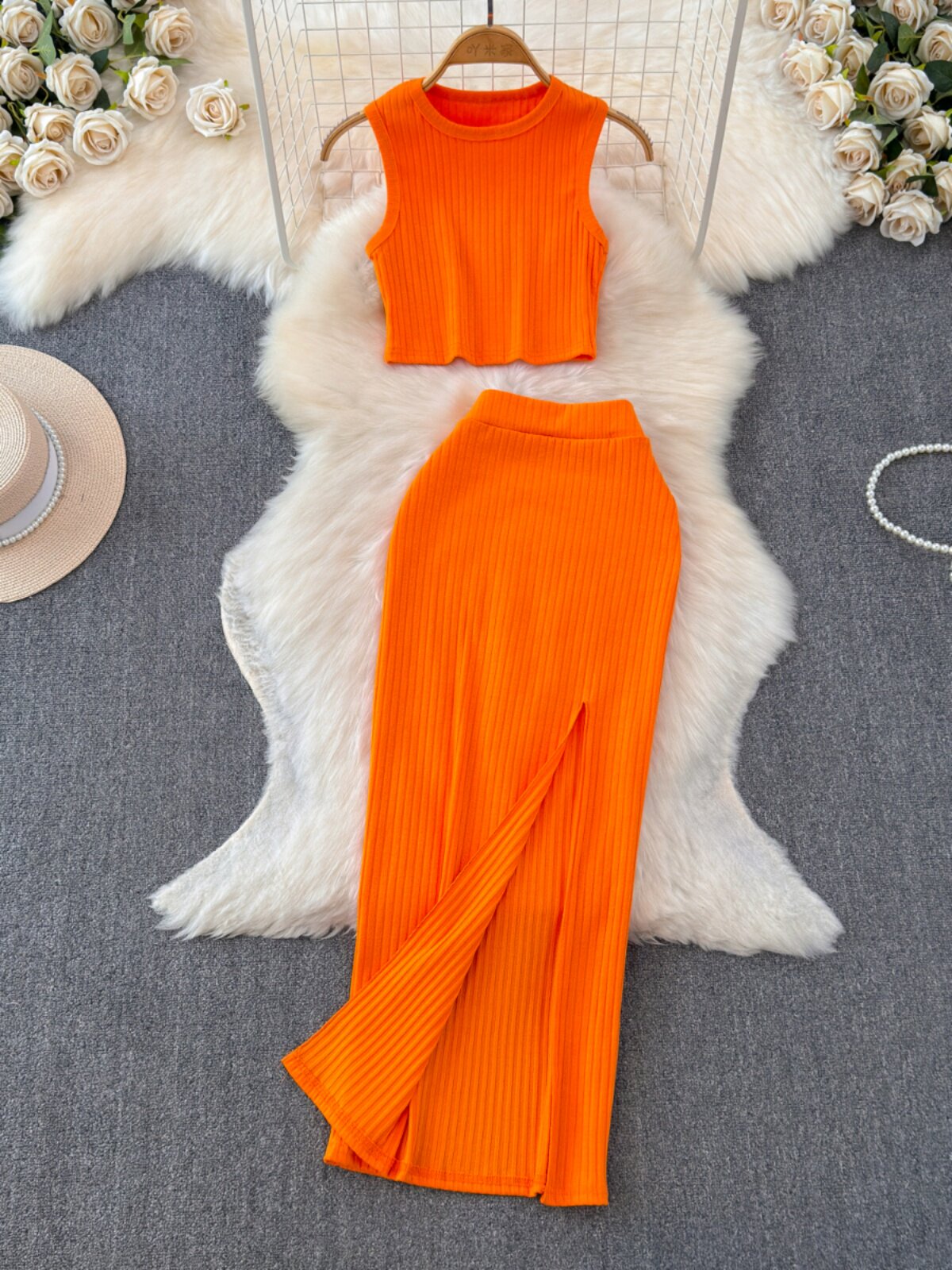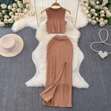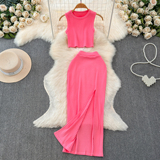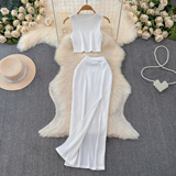 Комплект без рукавов, майка топ, юбка, высокая талия, с акцентом на бедрах