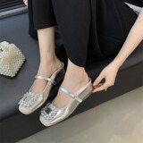 Высокие летние тапочки, обувь, серебряные слайдеры, из натуральной кожи, французский стиль