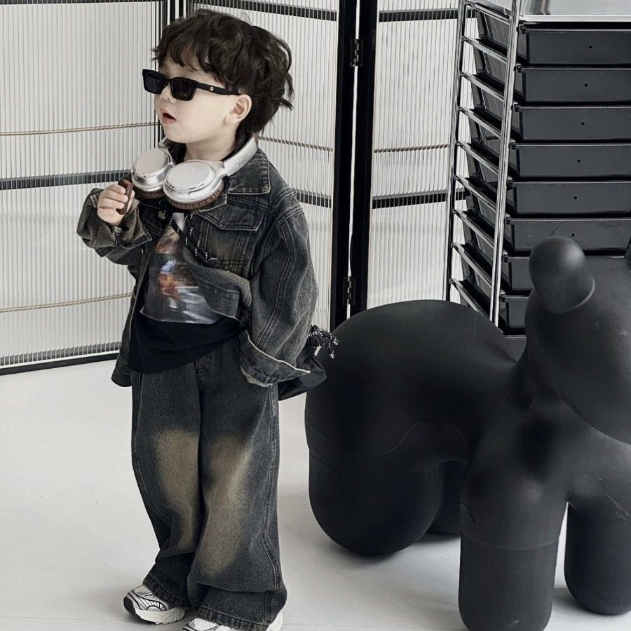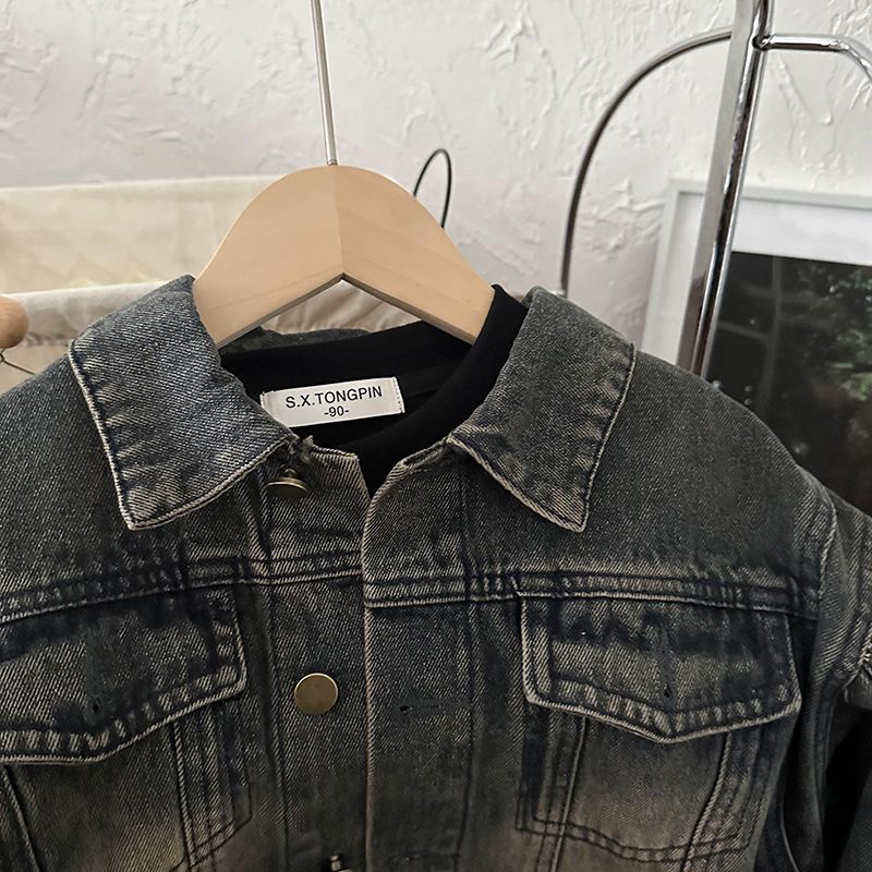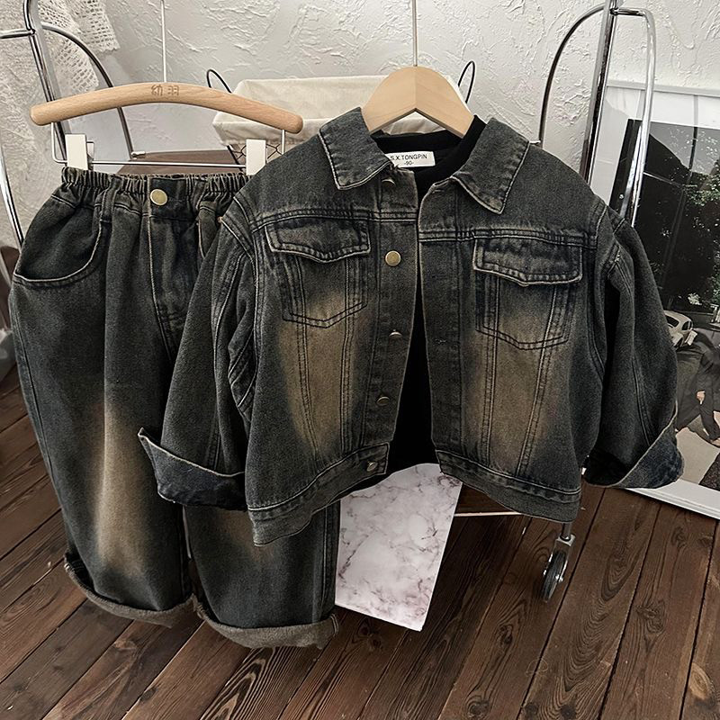 Детская осенняя ретро матовая куртка подходит для мужчин и женщин для девочек, джинсовый комплект, в корейском стиле