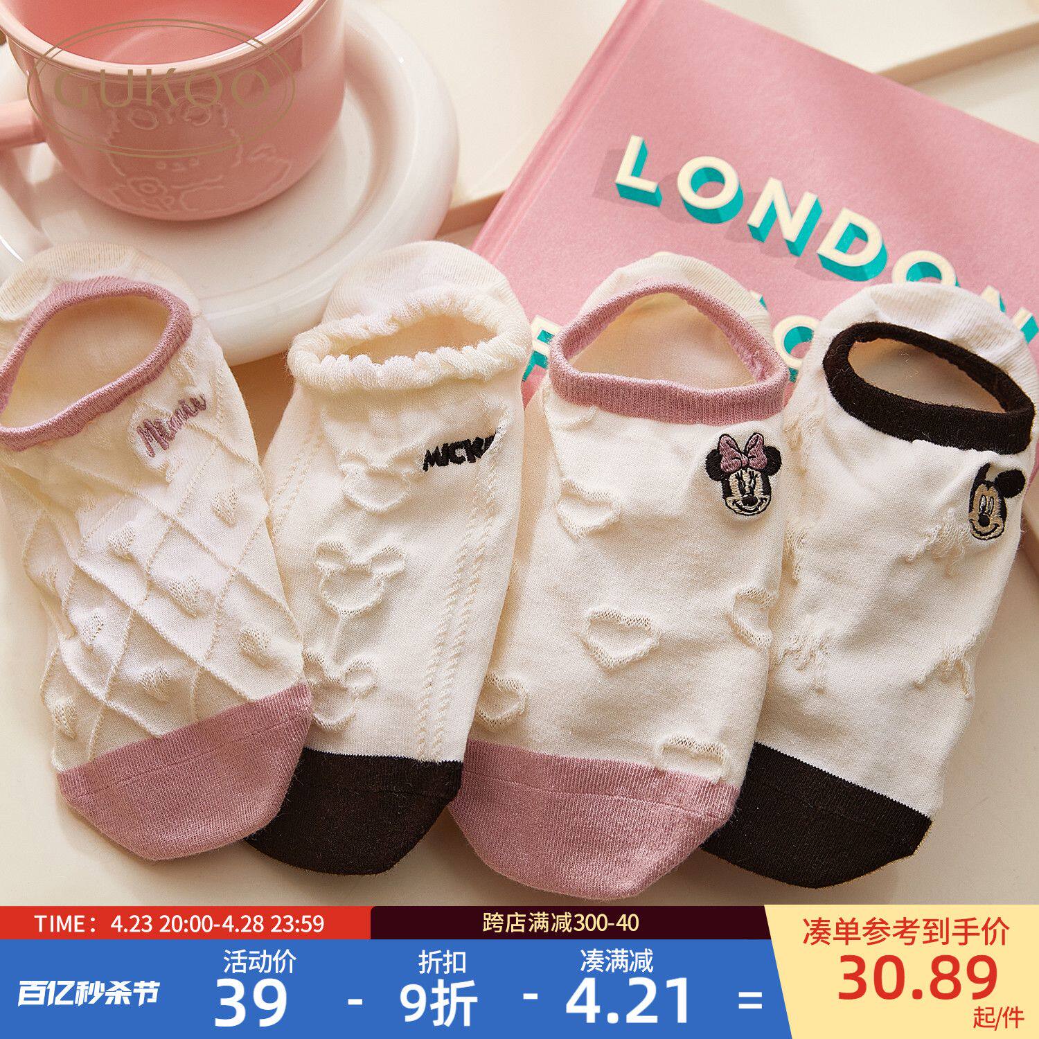 Летние тонкие нескользящие невидимые белые мультяшные носки