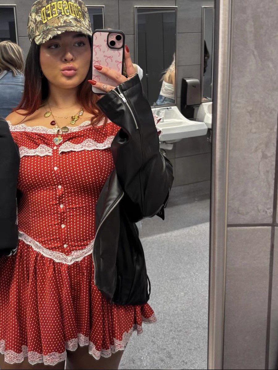 Spot Frankies Bikinis Wave Dot Dot, платье для шеи ретро кружев