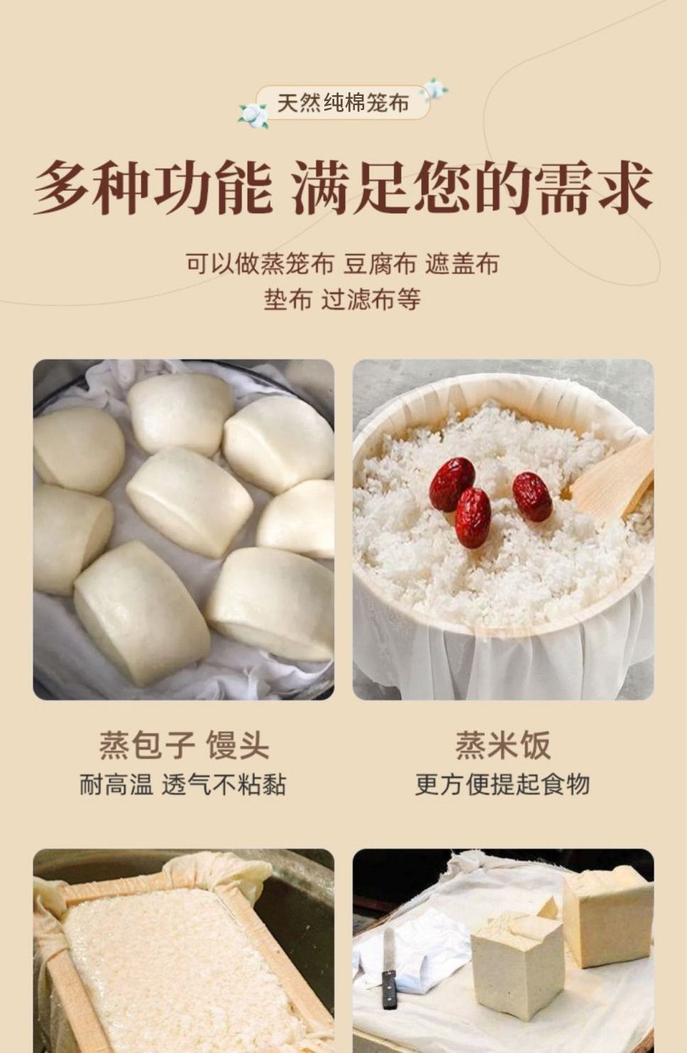 Чистое хлопчатобумажное фильтр ткани ткань тофу мешок для парированной рисовой ткань грубая ткань тонкая ткань ткань белая песчаная ткань круглый квадрат