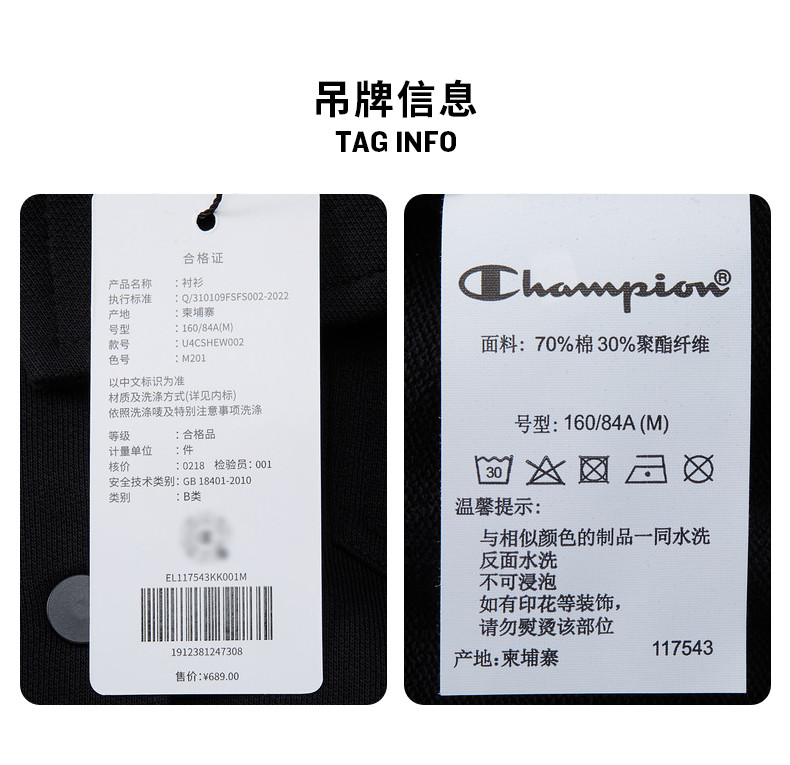 Продавец:Champion官方旗舰店