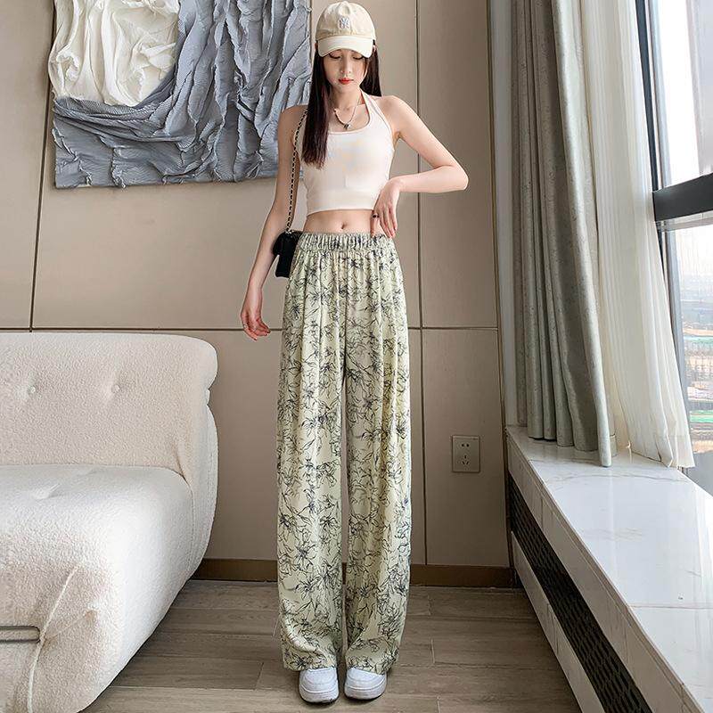 Летние шелковые тонкие штаны для отдыха, высокая талия, свободный прямой крой, подходят для подростков