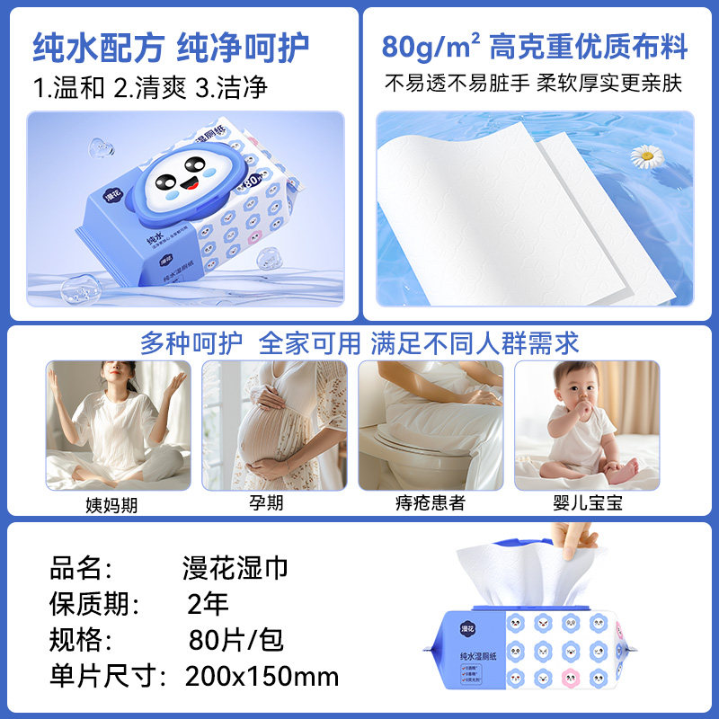 漫花 Влажная туалетная бумага для семейных доступных туалетных салфет