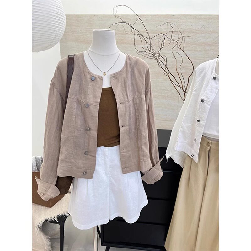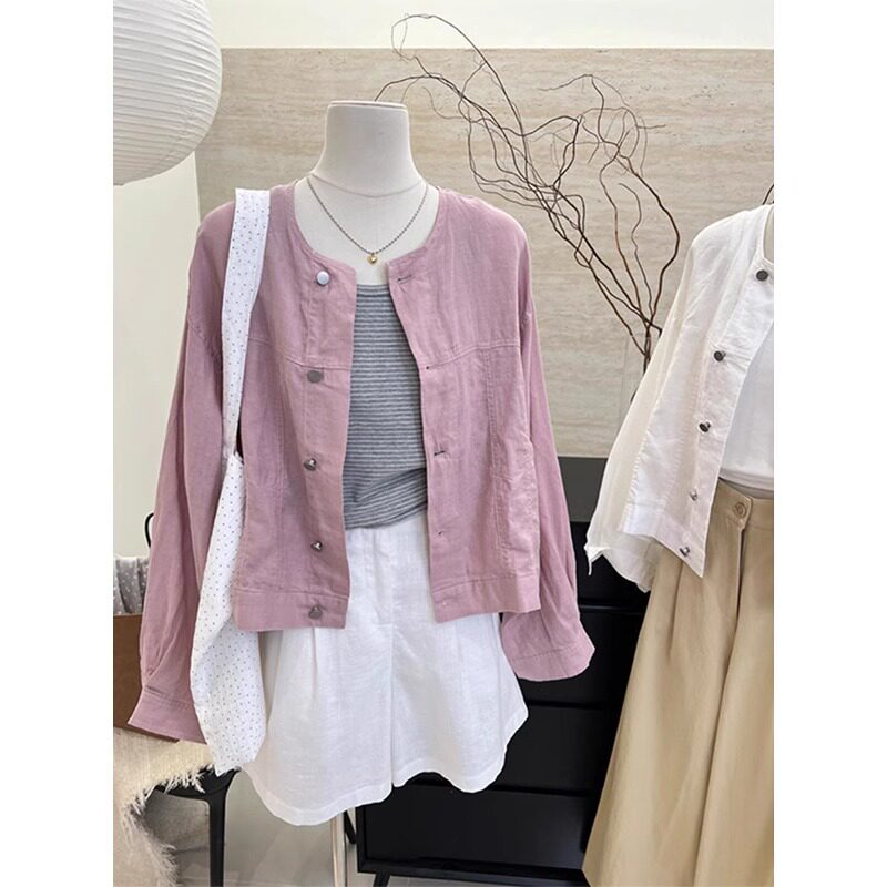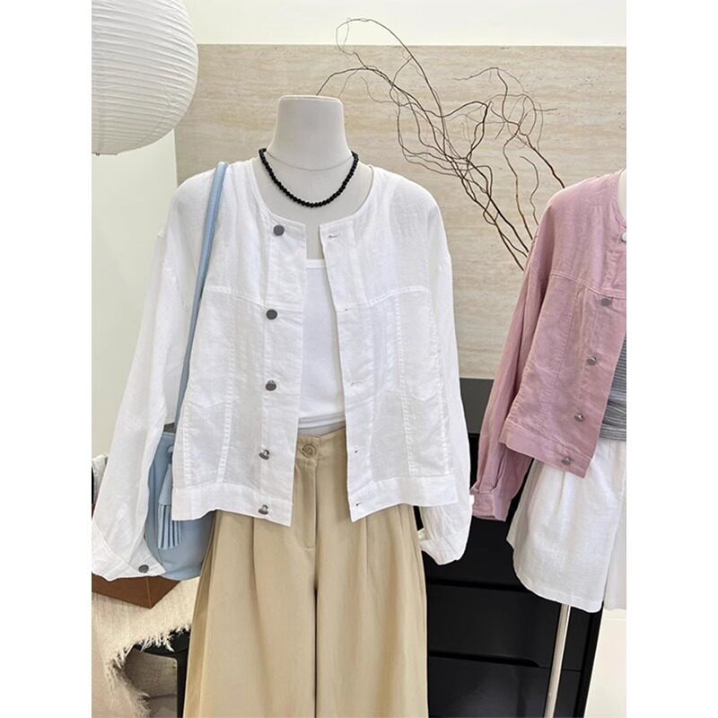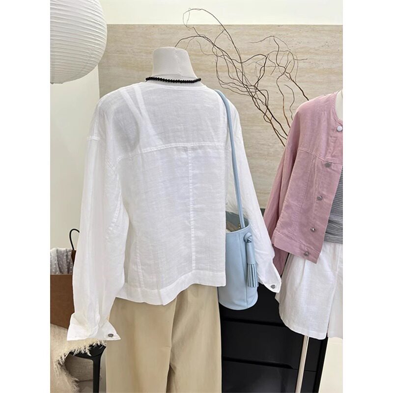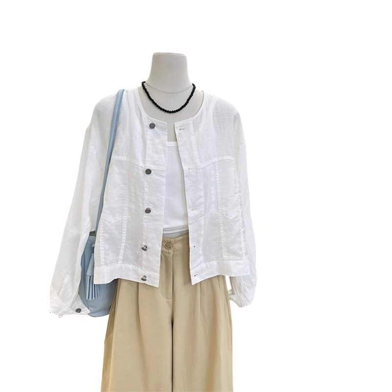 Белая цветная рубашка с круглым воротником, тонкая летняя куртка, изысканный стиль, защита от солнца, оверсайз