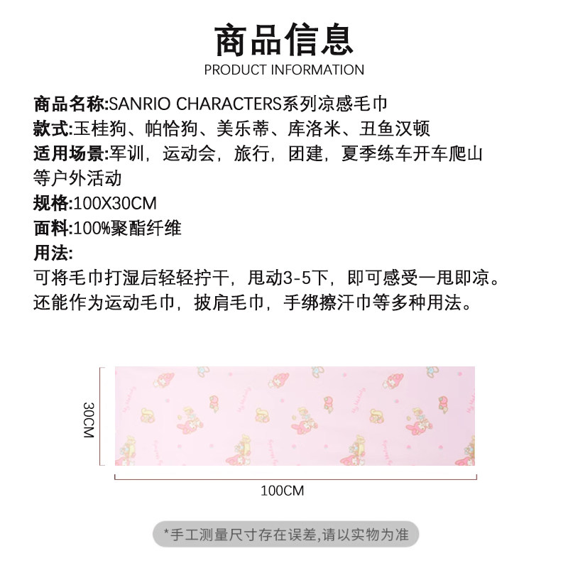 Miniso Famous Choi Pin Sanrio Series крутые полотенца, пот, пот, лед и быстрые спортивные домашние полотенца лето