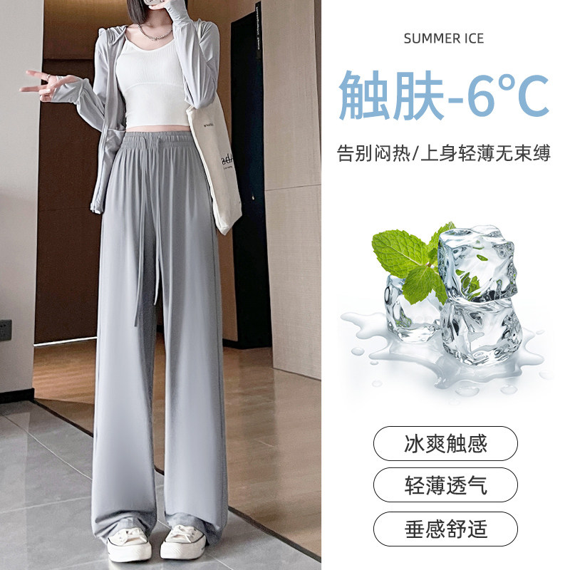 Шелковые тонкие штаны для отдыха, защита от солнца, высокая талия, свободный прямой крой