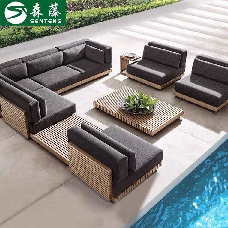 Дорожный диван, вилла, уличная мебель из натурального дерева для отдыха, водонепроницаемый комплект