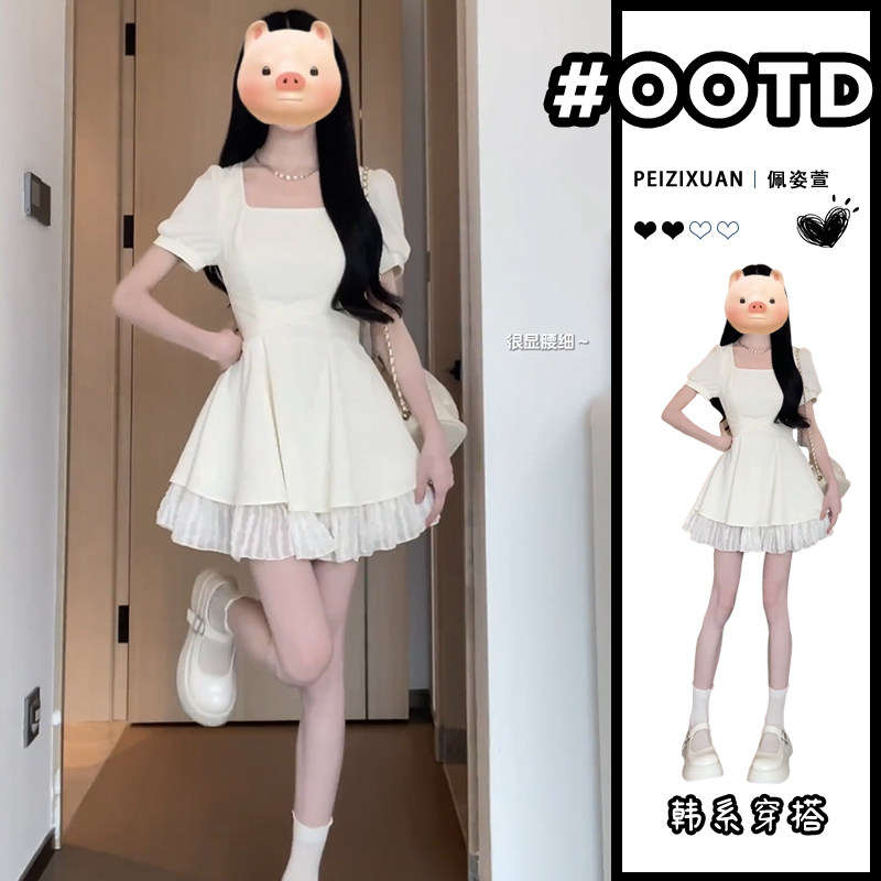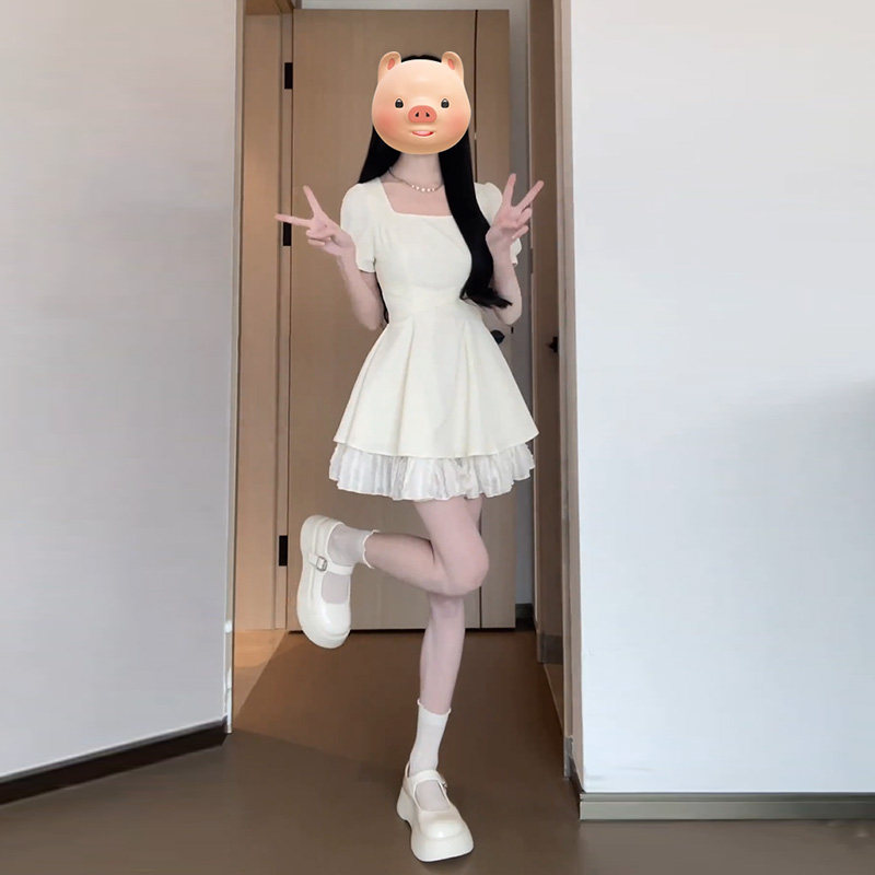 Белое летнее небольшое платье, мини-юбка, французский стиль, изысканный стиль, подходит для подростков