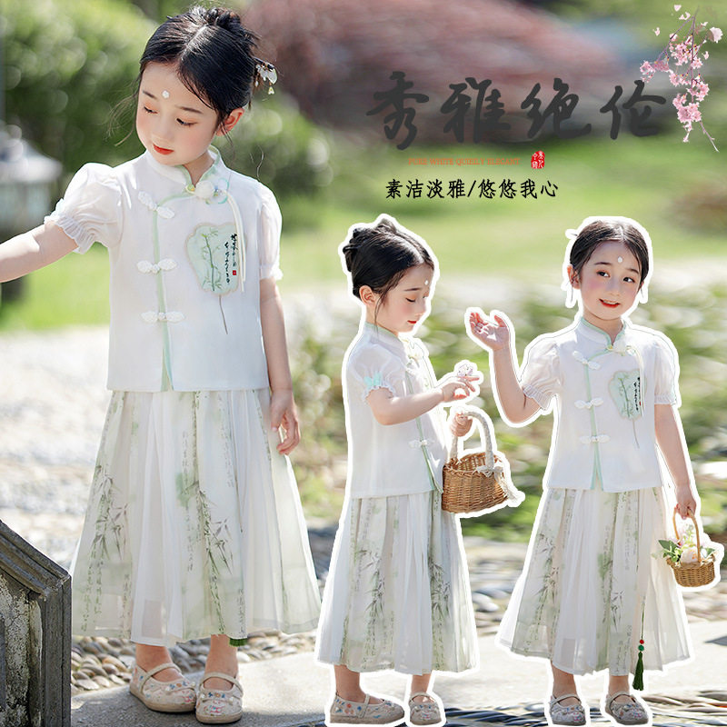 Свежий комплект, летнее ханьфу, 2024 года, короткий рукав, китайский стиль