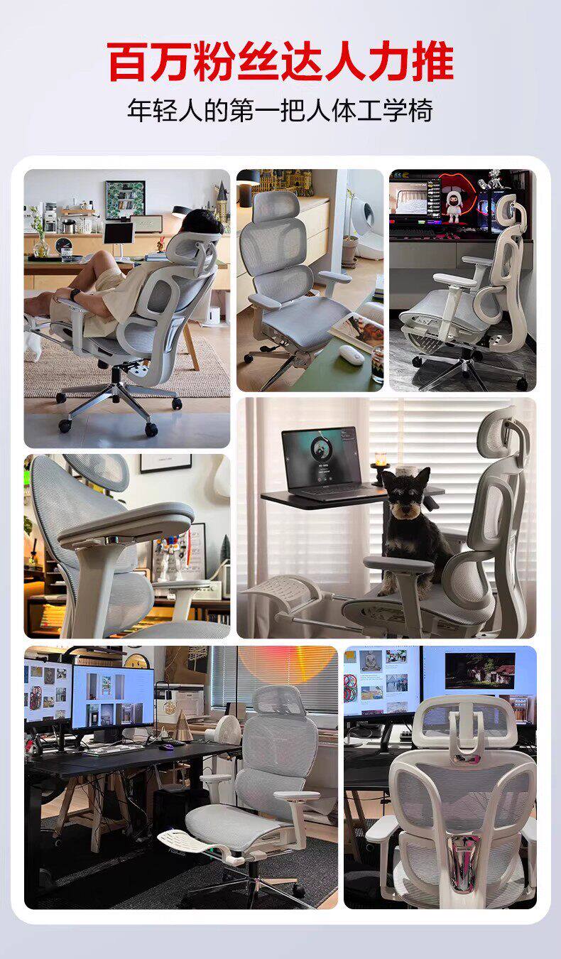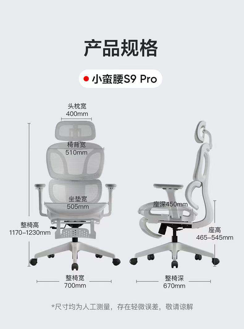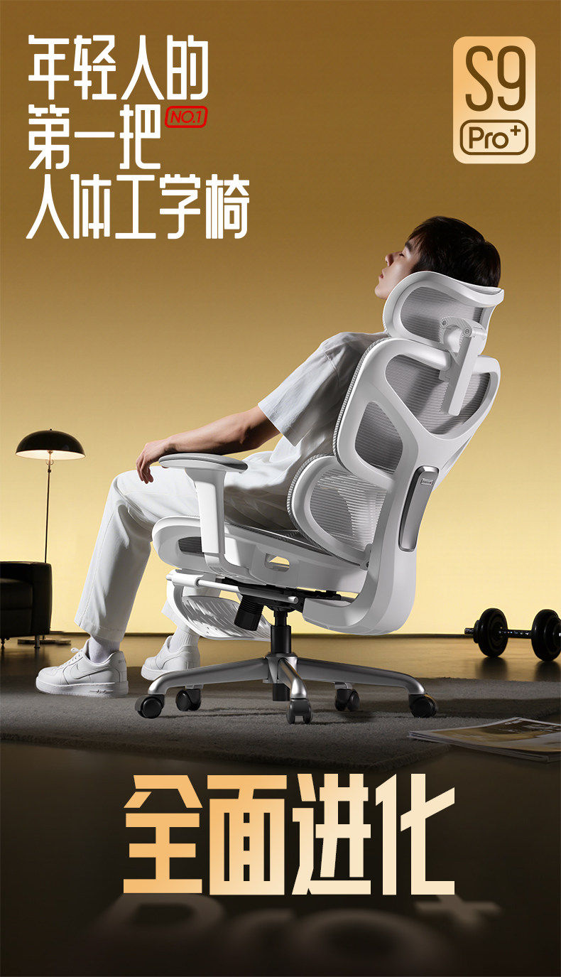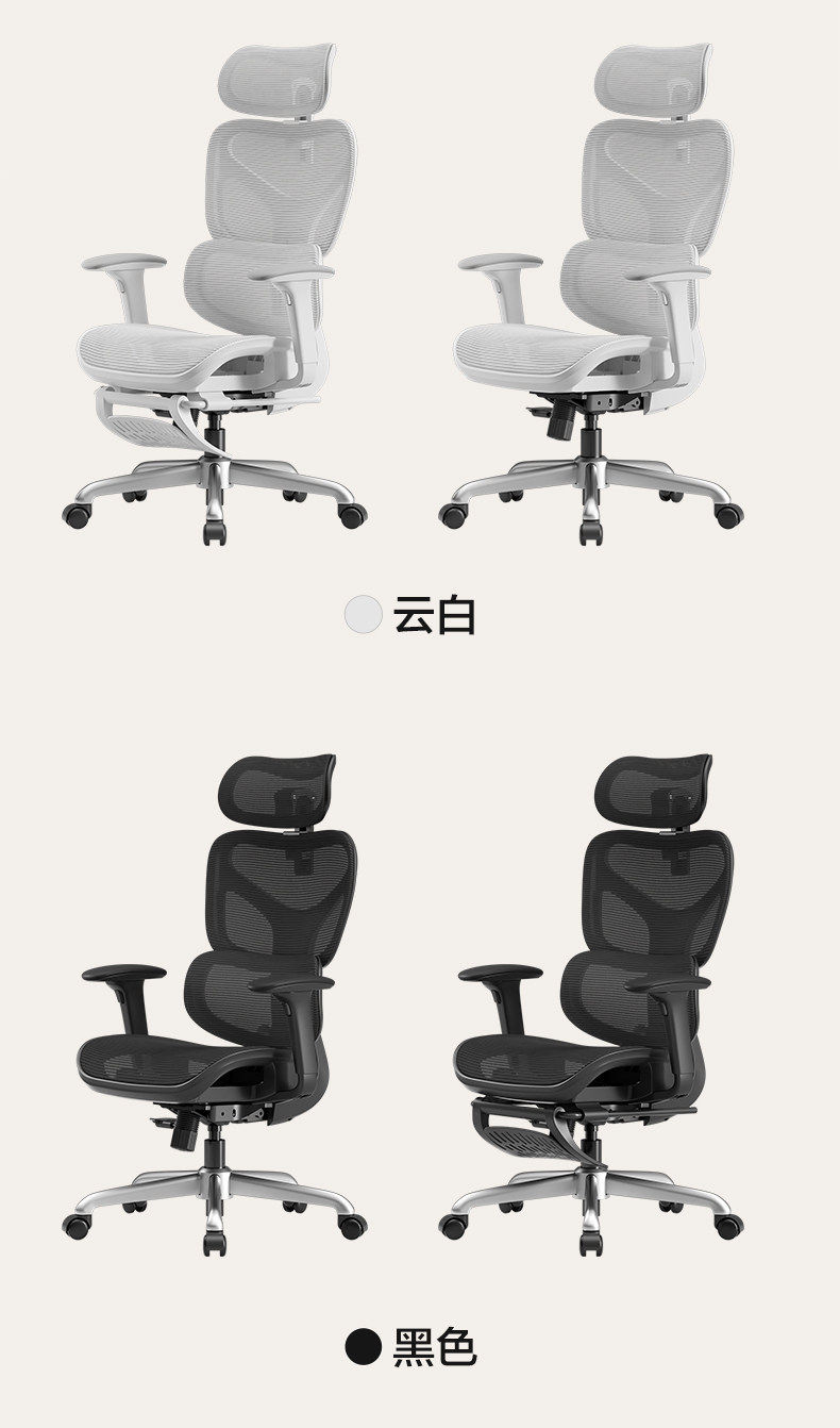 - S9Pro Yunbai [4D поясничная опора + регулируемая глубина сиденья + подлокотник в 8 направлениях + полностью сетчатая подушка сиденья] с подставкой для ног