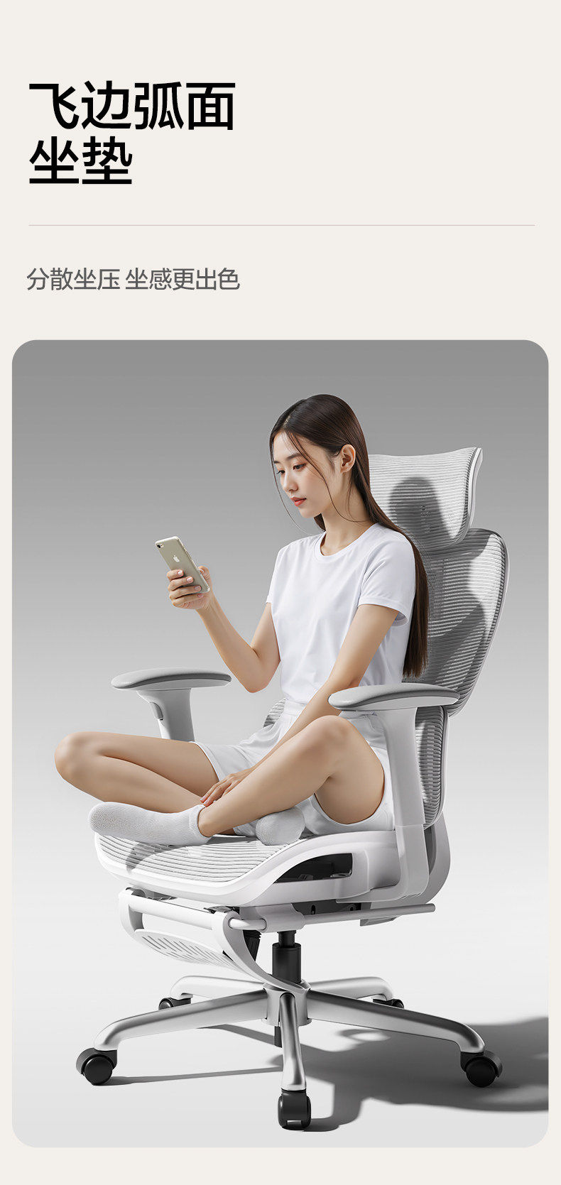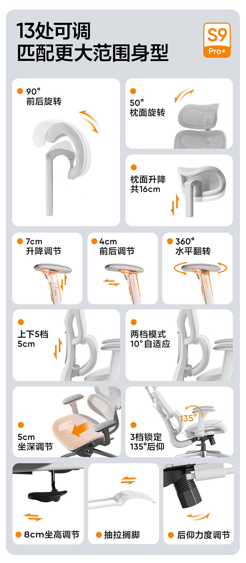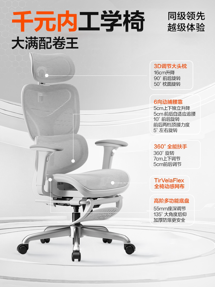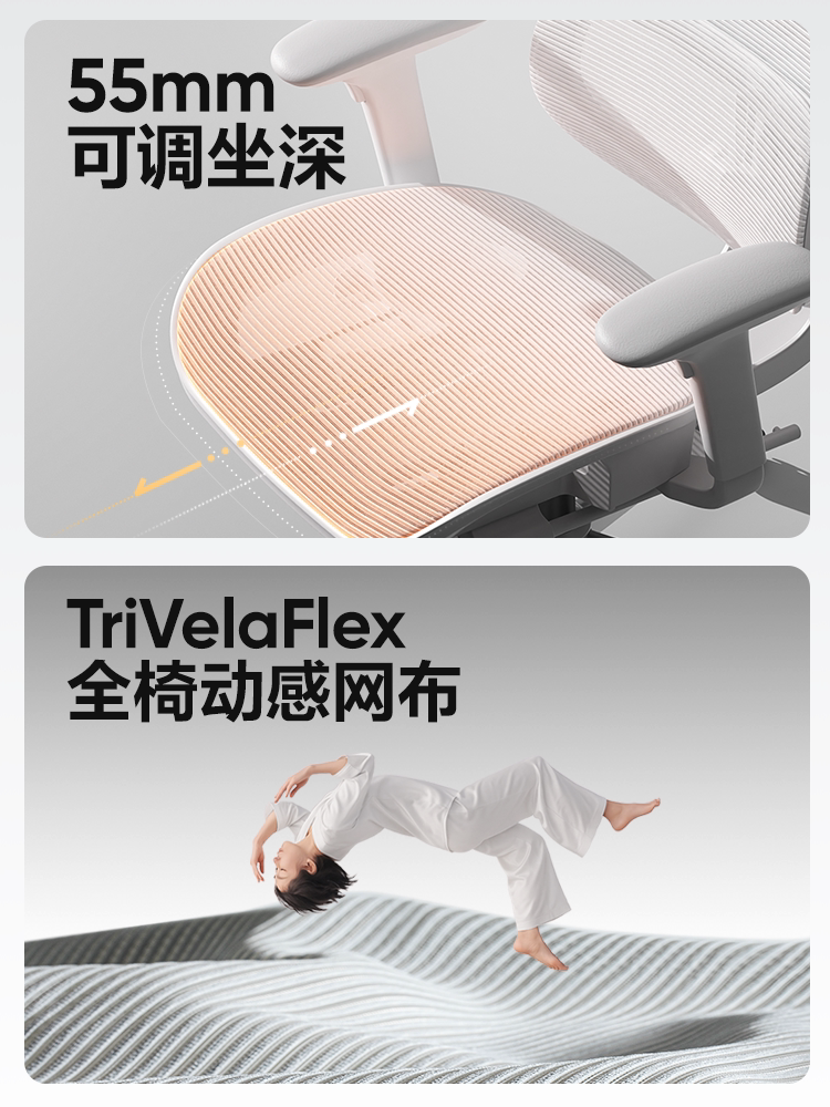 - S9Pro Yunbai [4D поясничная опора + регулируемая глубина сиденья + подлокотник в 8 направлениях + полностью сетчатая подушка сиденья] с подставкой для ног