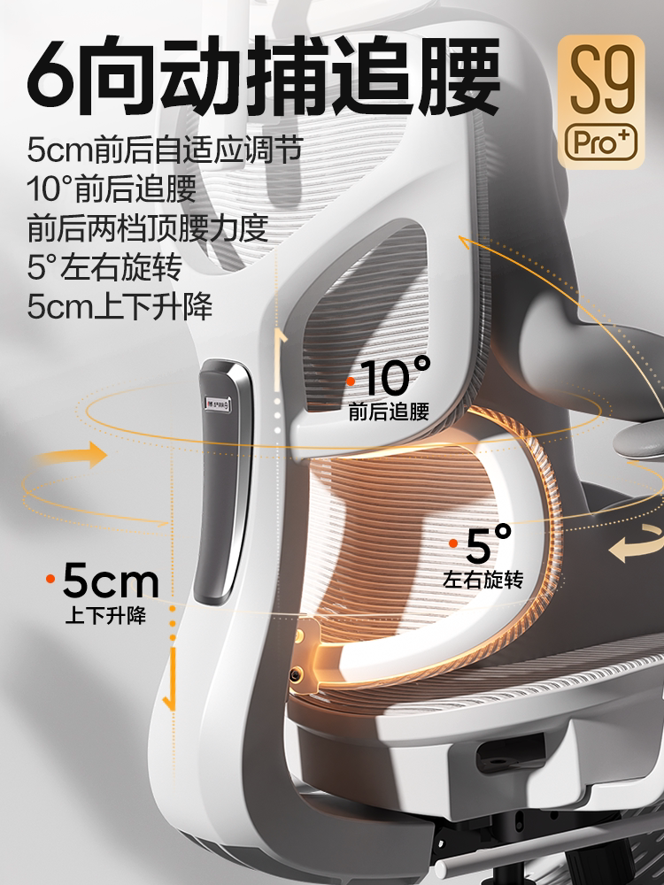 - ⭐6D поясничная опора ⭐S9Pro+Yunbai [6D поясничная опора с захватом движения + круговой подлокотник на 360° + 3D-подголовник + регулируемая глубина сиденья] Без подставки для ног