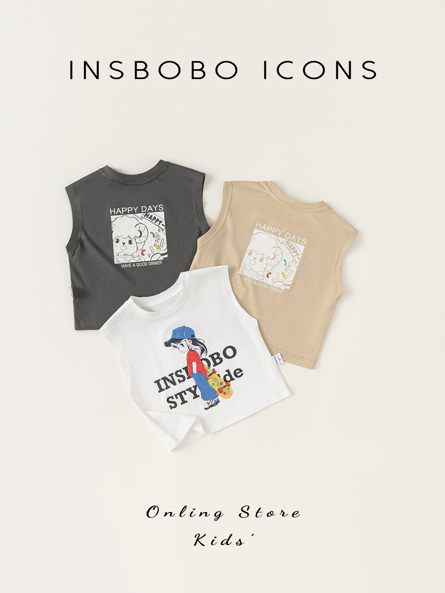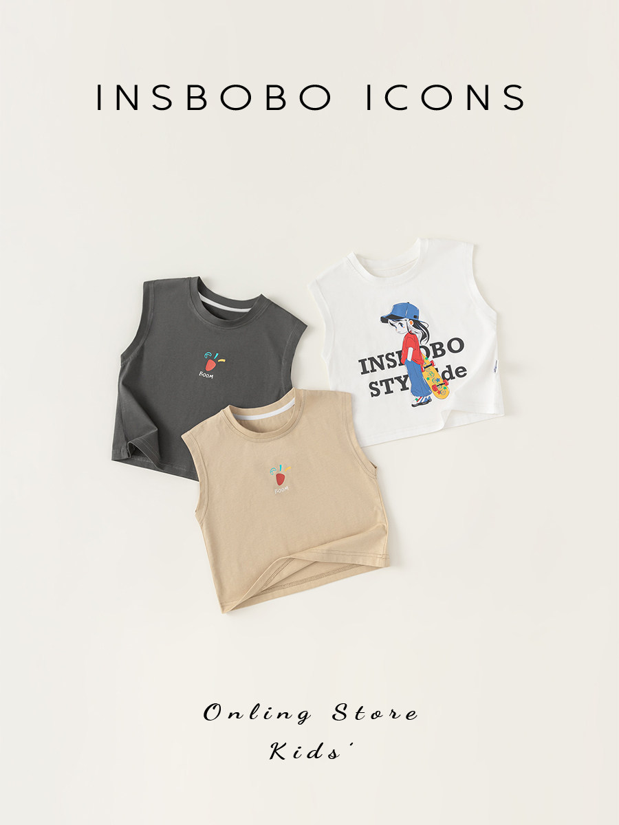 INSbobo Летняя майка для мальчиков, детская спортивная тонкая футболка без рукавов