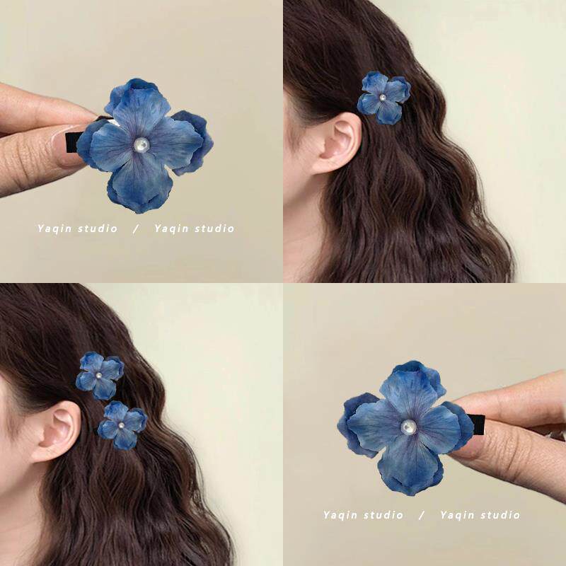 Синяя заколка для волос, аксессуар для волос, в цветочек