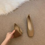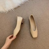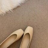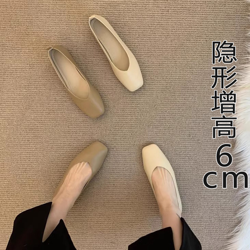 [内增高浅口单鞋女夏2024新款一脚蹬方头软皮软底豆豆鞋粗跟奶奶鞋]
