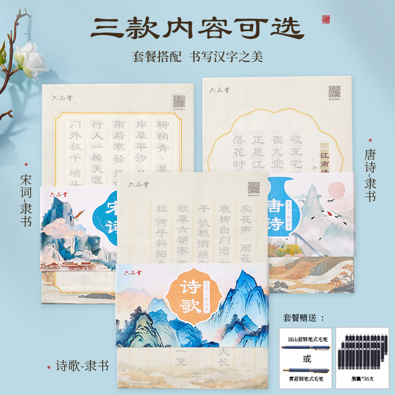 Кисть для письма, тетрадь, ручка, комплект, Танская поэзия, каллиграфия для взрослых, подходит для начинающих