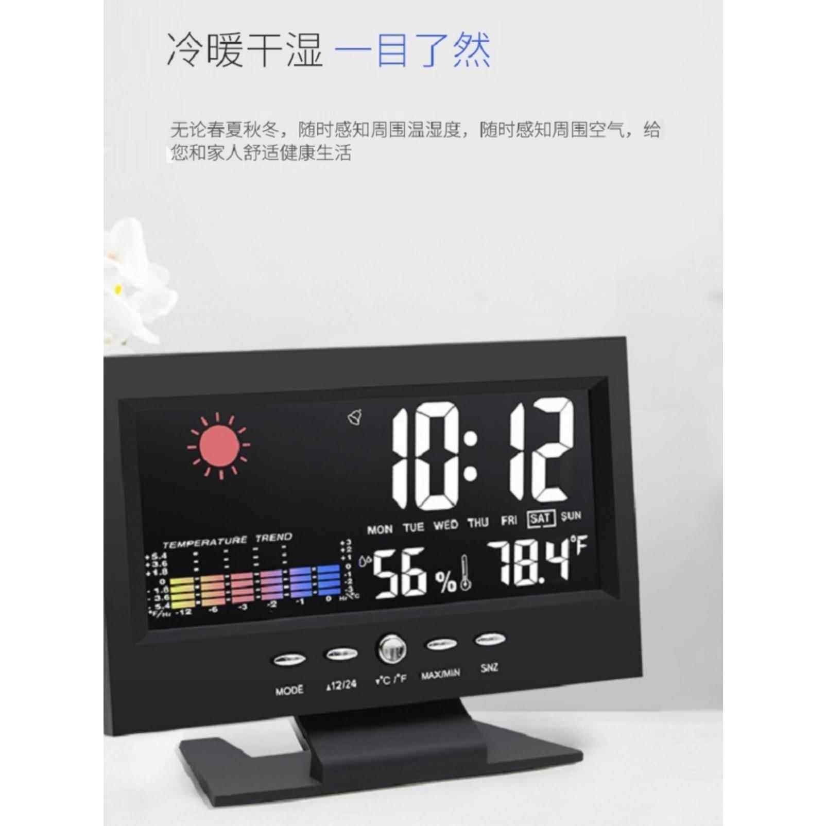 Многофункциональный звуковое управление метеорологическими часами электронные часы творческий светодиодный цвет экрана прогноз