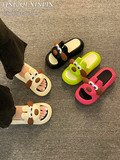 Симпатичные женские тапочки, летние слипоны из ЭВА для верхней одежды, новинка 2024 года с утолщенной толстой подошвой, пляжные сандалии с дерьмовым шагом, суперпопулярные.