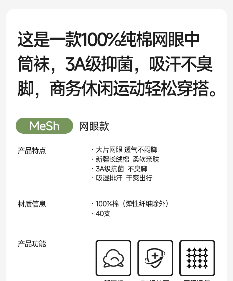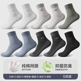 Хлопковые носки, летние тонкие сетчатые дезодорированные антибактериальные гольфы, средней длины, впитывают пот и запах