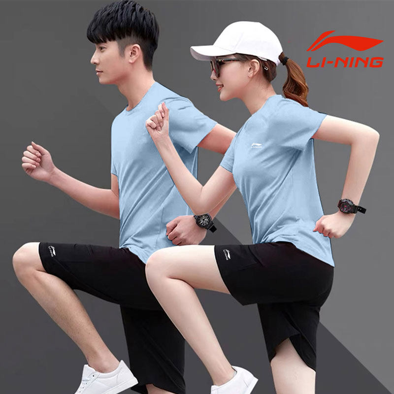 Li Ning, однотонный спортивный костюм, футболка с коротким рукавом, шорты для спортзала, комплект для отдыха, для бега, делается под заказ