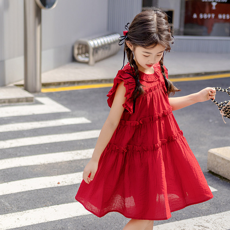 Летнее платье, юбка, детская модная красная летняя одежда, жилет, наряд маленькой принцессы, в западном стиле