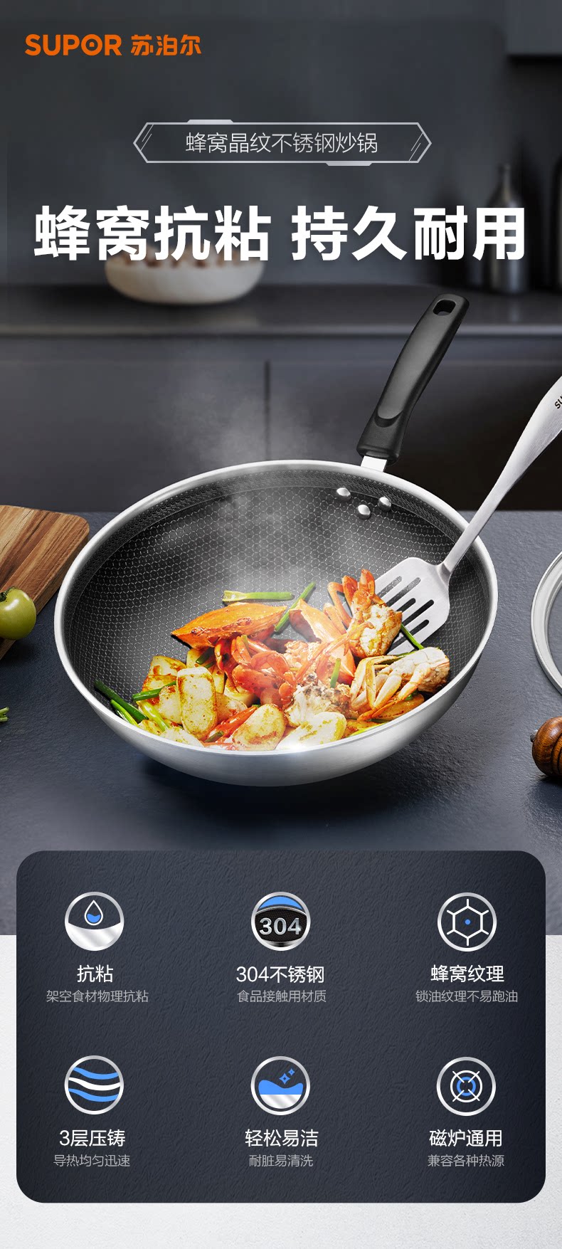 SUPOR SUPOR ОТВЕЙСТВЕННАЯ СТАЛЬНАЯ СТАВИНА -Фри -соты для сот -сот.