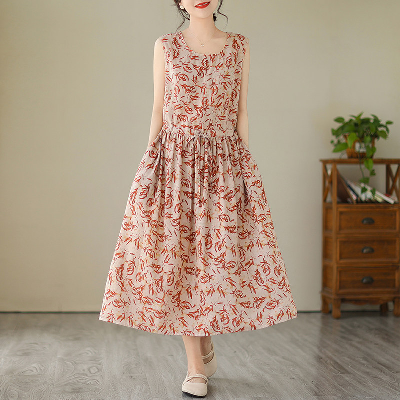 Летнее платье без рукавов без рукавов для отдыха, из хлопка и льна, большой размер